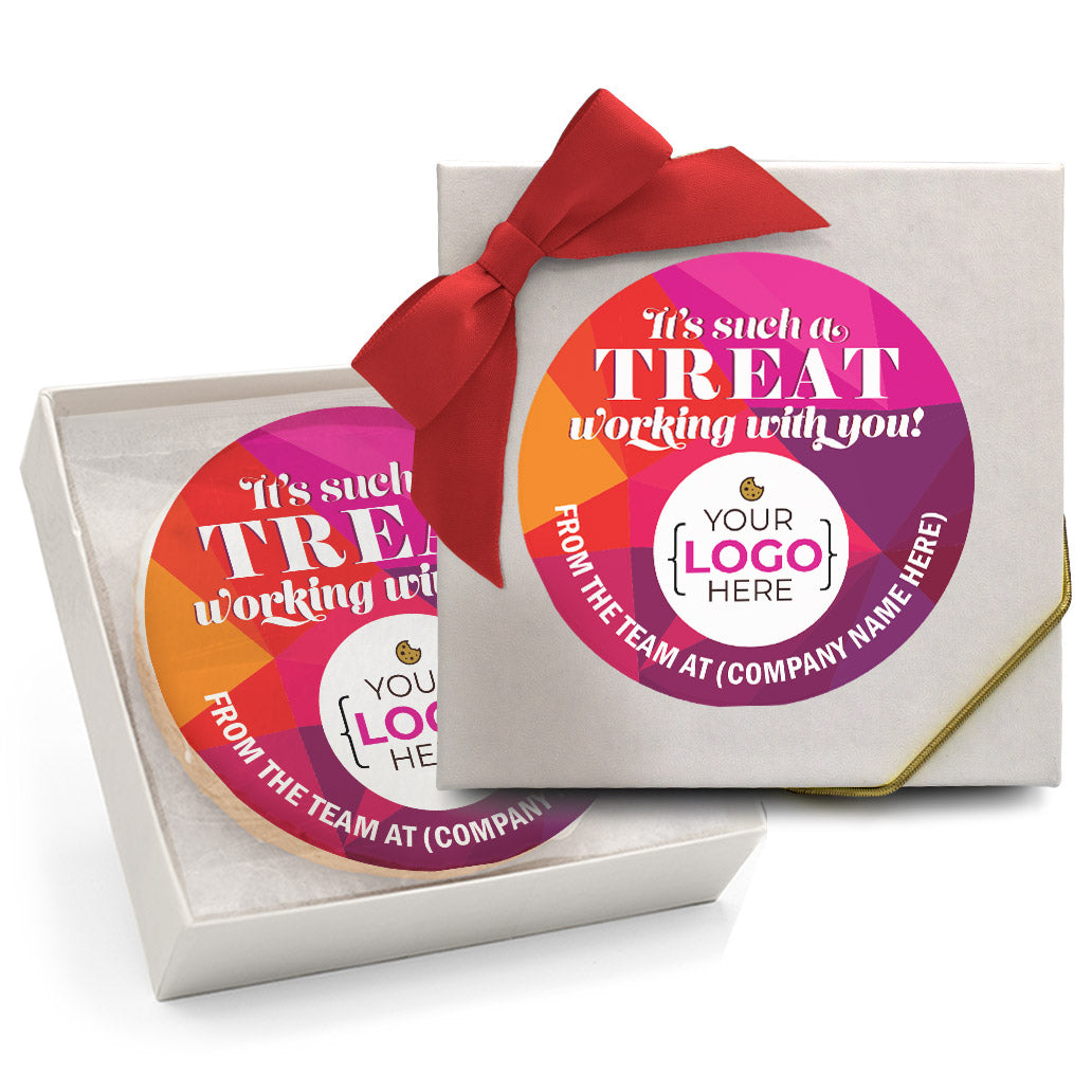 Celebrate special moments with our exquisite custom cookies gift boxes, perfect for corporate gifts or personal occasions. Each gift box features 12 individually wrapped cookies, sealed for freshness and ready to impress. Choose between direct-print royal icing sugar cookies or an assortment of gourmet flavors with personalized labels. Add your logo, photo, or special message to create a customized cookie gift set that recipients won't forget. Our boxes include a matching 7" personalized sticker on top for an extra special touch. Shop our complete collection to view every delicious option, from chocolate chip to decadent red velvet, with quick delivery available. Add to cart today and transform ordinary gifts into extraordinary memories!