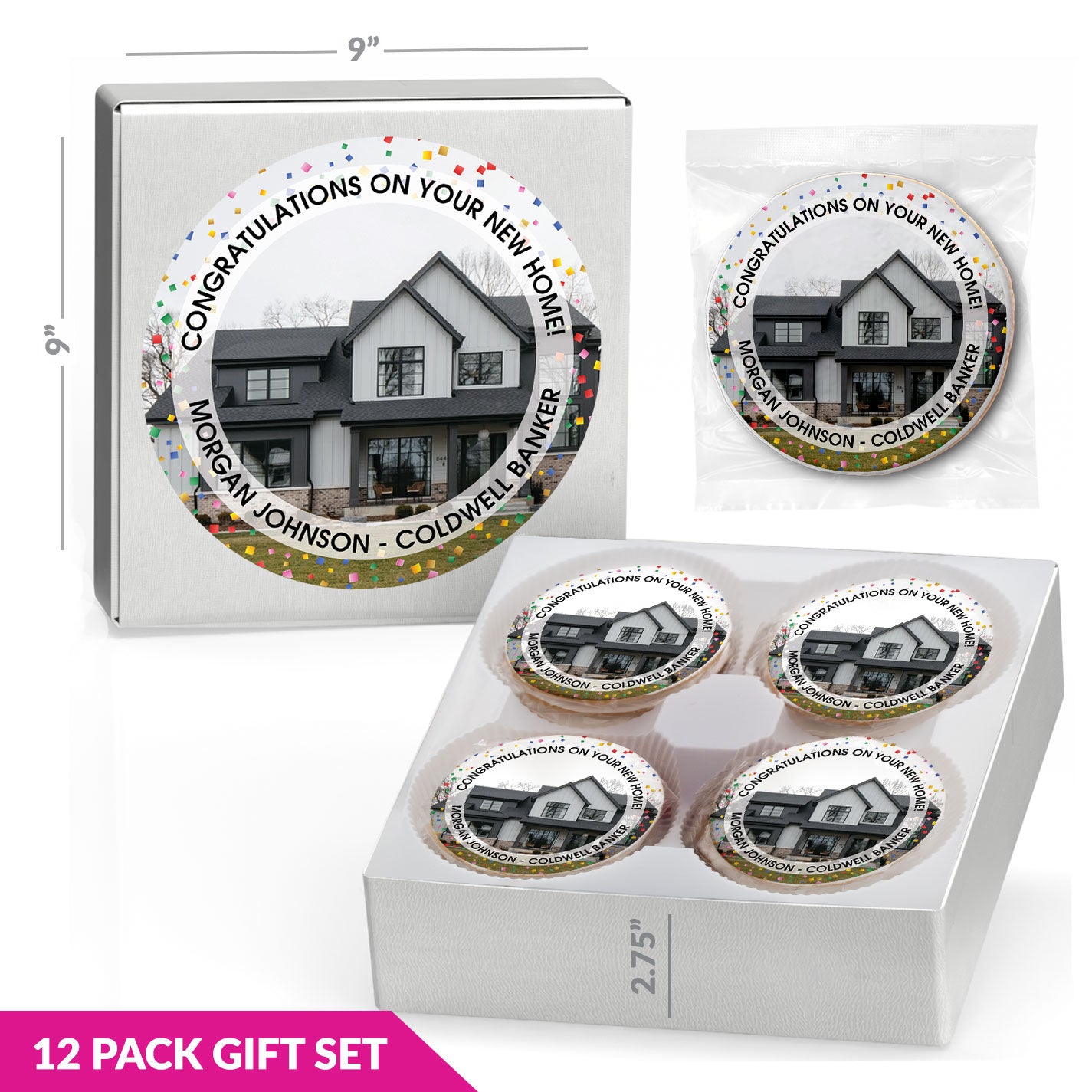 Congrats on your New Home Photo Upload & Message - Personalized Direct Print on Round Sugar Cookie Gift Set