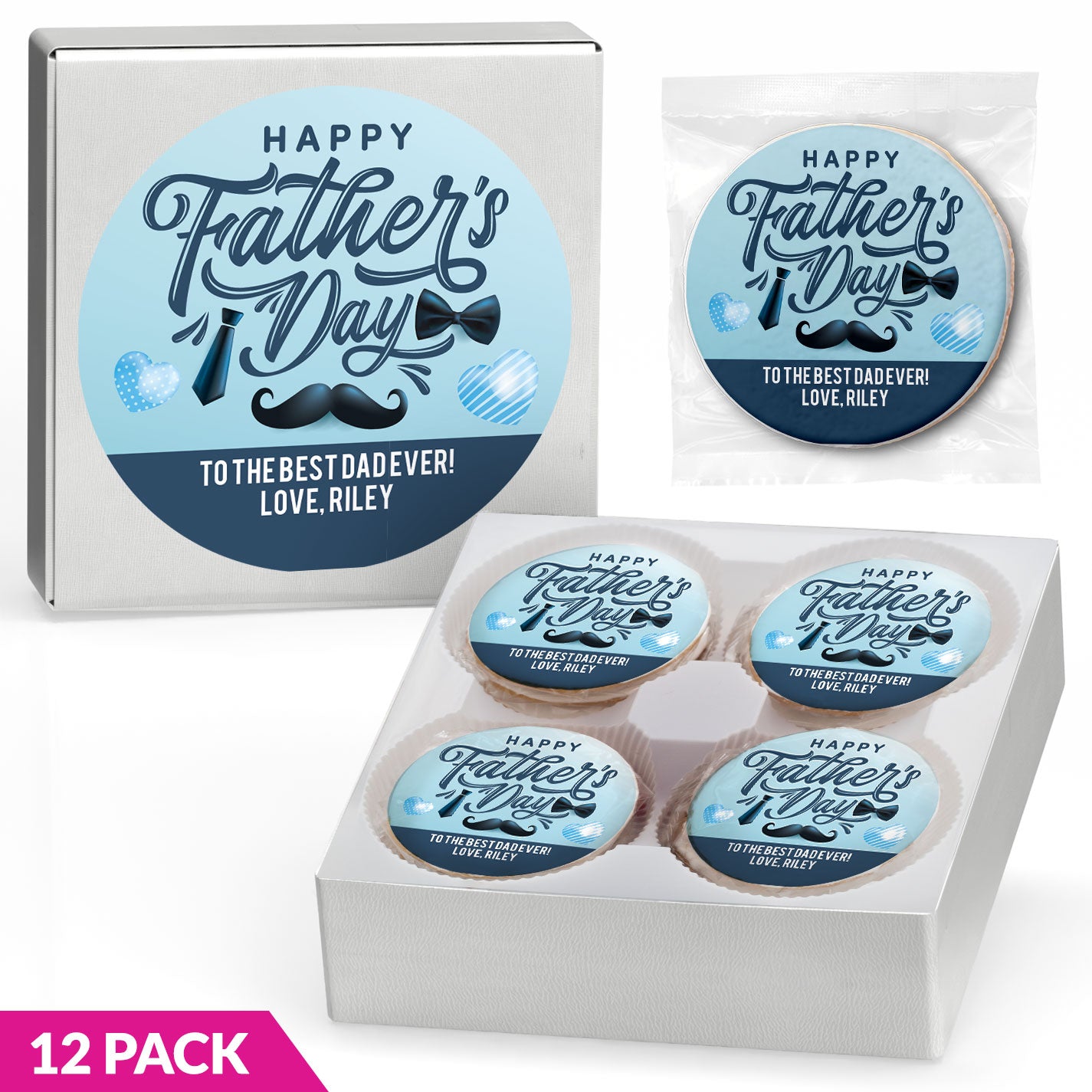 Happy Father's Day Classic Icons - Personalized Direct Print on Round Sugar Cookie Gift Set