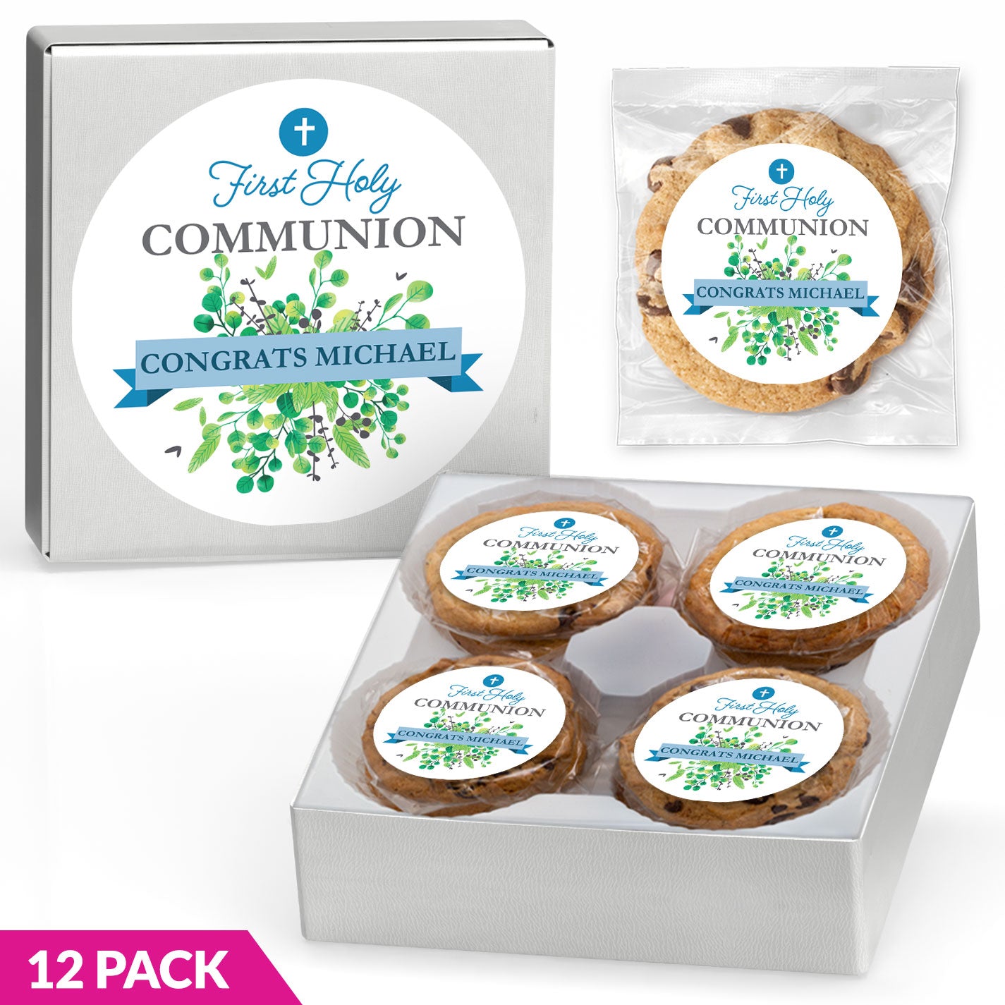 First Holy Communion Greenery Banner Boy - Gourmet Chocolate Chip or Variety Pack w/ Full Color Personalized Sticker Gift Set