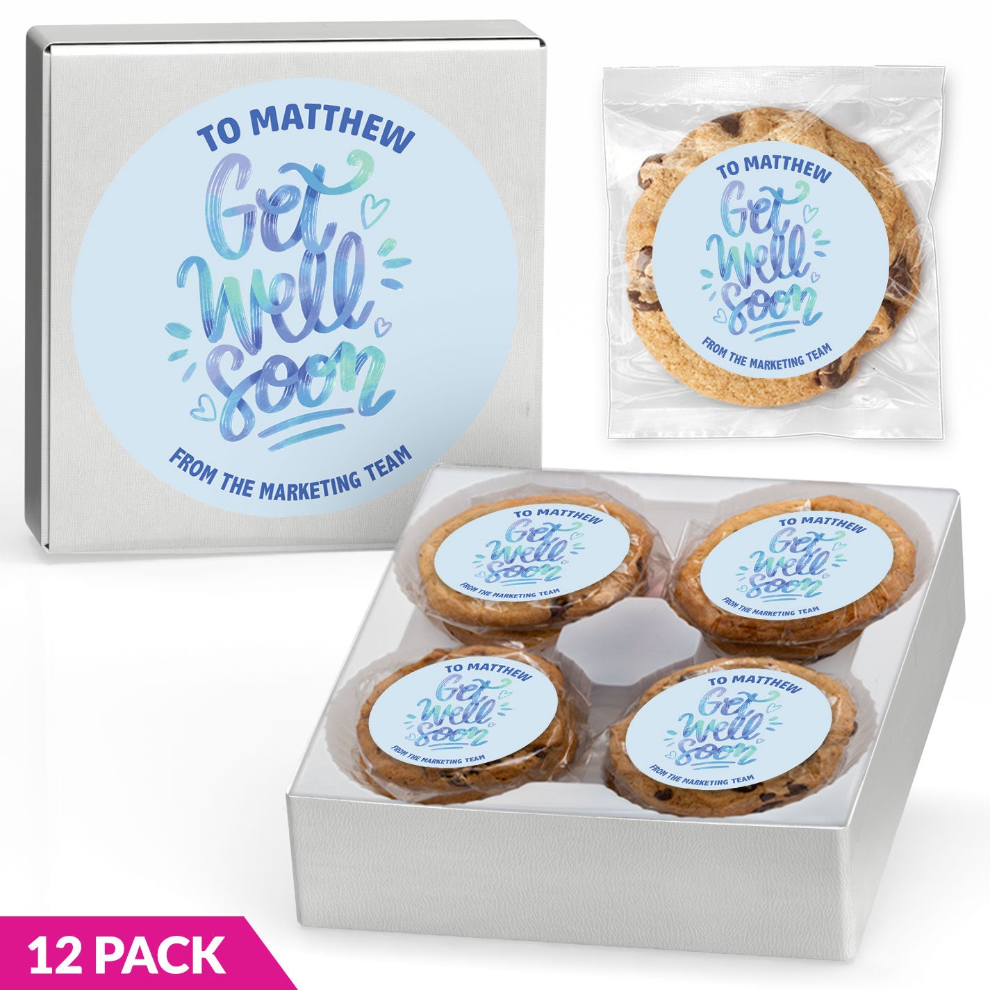 Get Well Soon Blue Gradients - Gourmet Chocolate Chip or Variety Pack w/ Full Color Personalized Sticker Gift Set