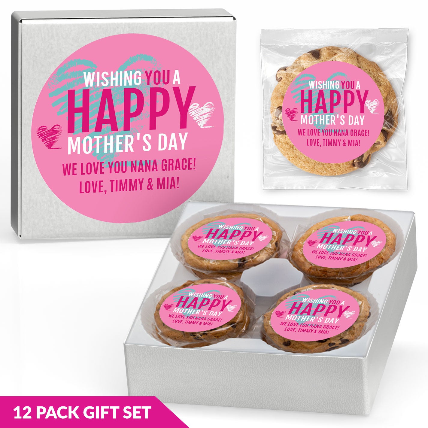 Happy Mother's Day Scribble Hearts - Gourmet Chocolate Chip or Variety Pack w/ Full Color Personalized Sticker Gift Set