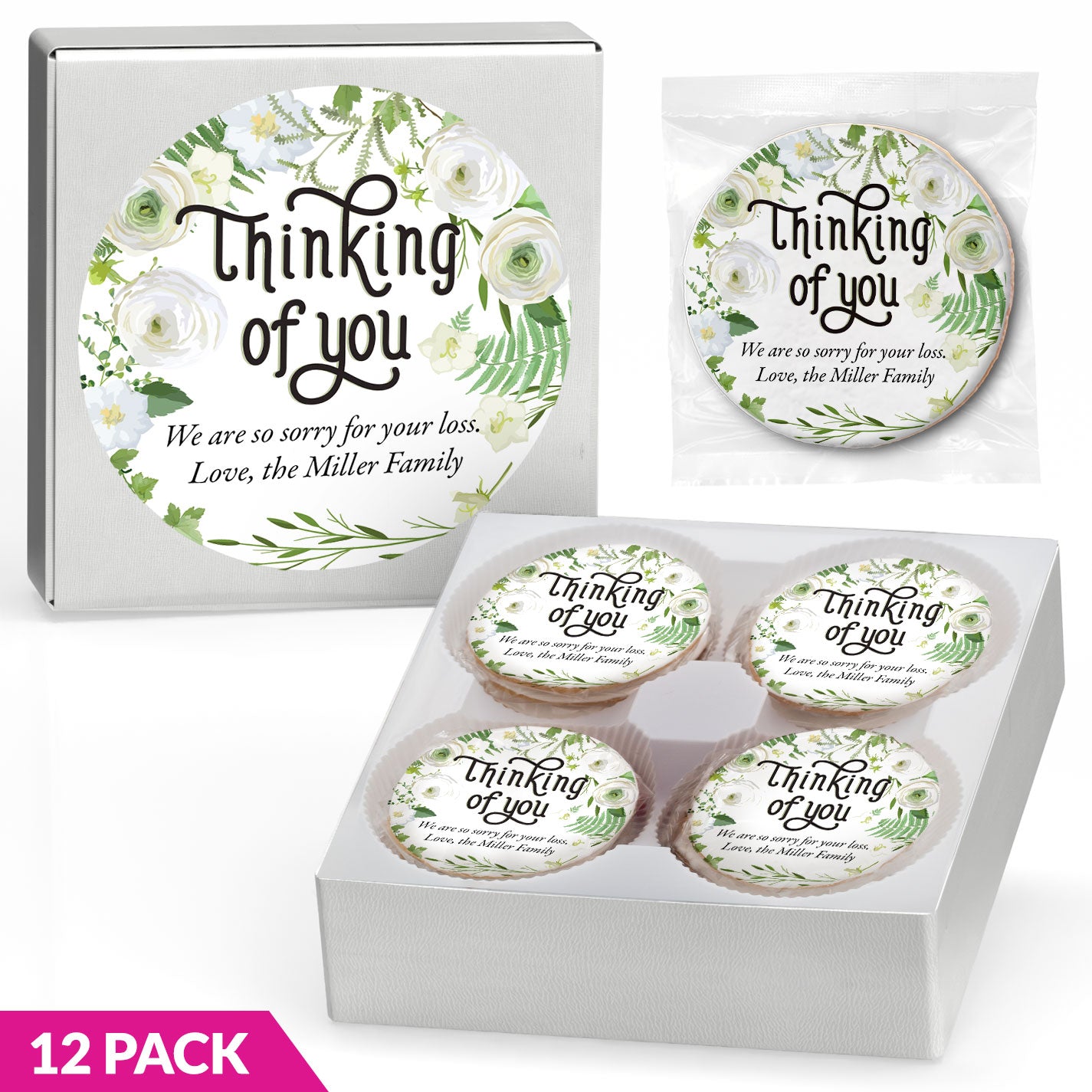 Thinking of You Florals - Personalized Direct Print on Round Sugar Cookie Gift Set