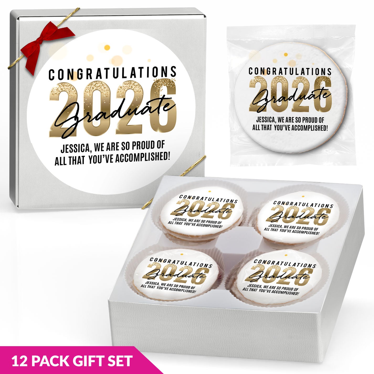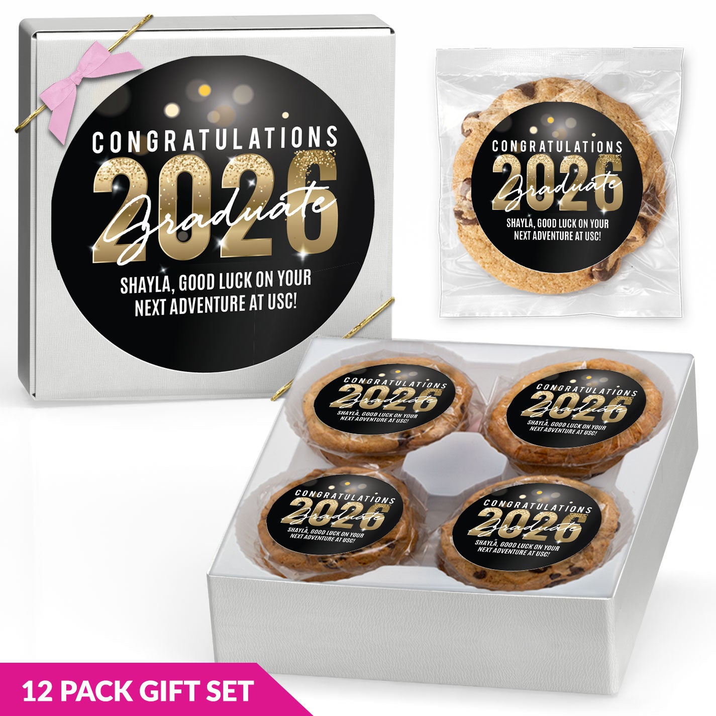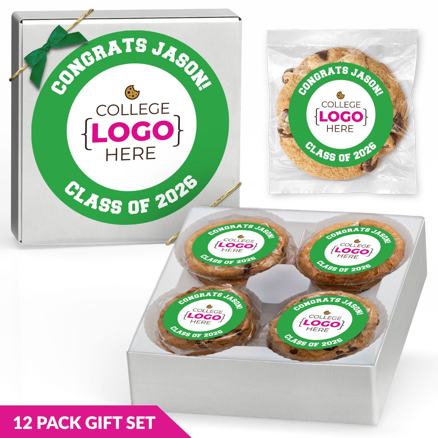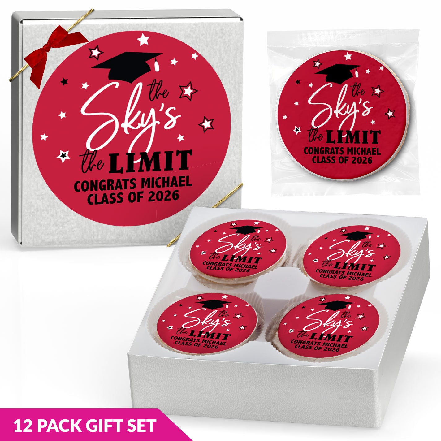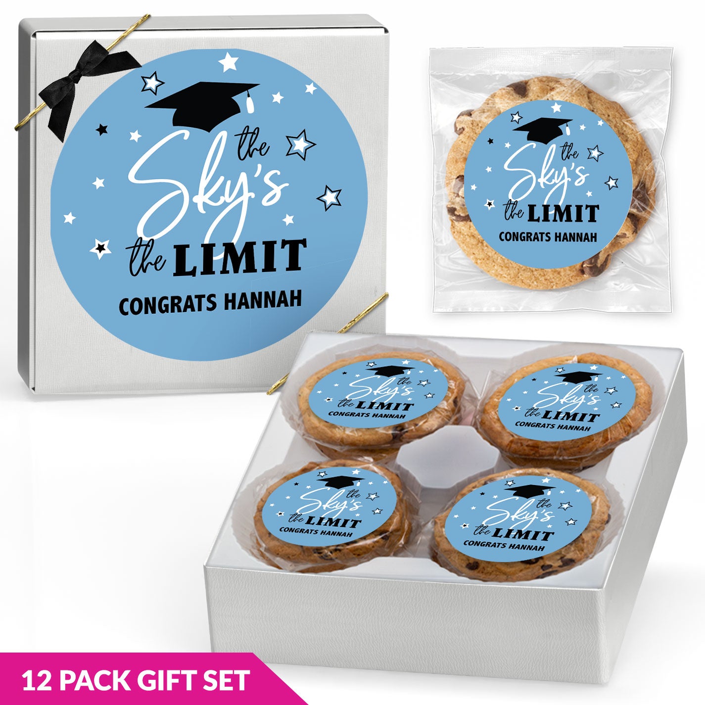 For added variety, gourmet cookies are available in flavors such as classic Chocolate Chip, Chocolate Chip with M&Ms, White Chocolate Macadamia Nut, and more. With multiple flavors available, it’s easy to find graduation cookies that fit your celebration.