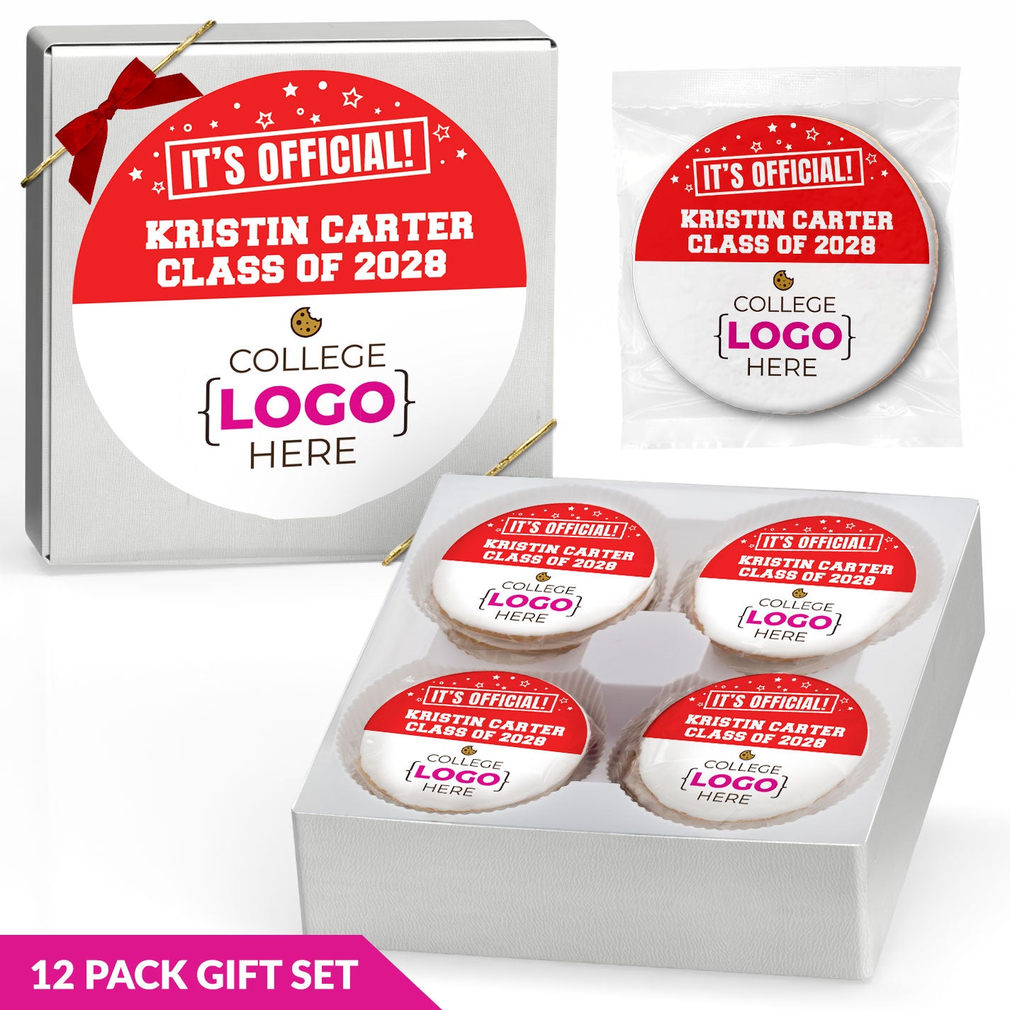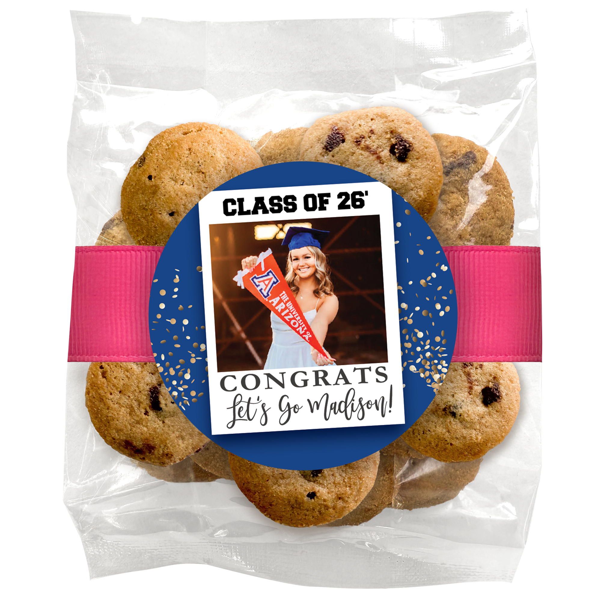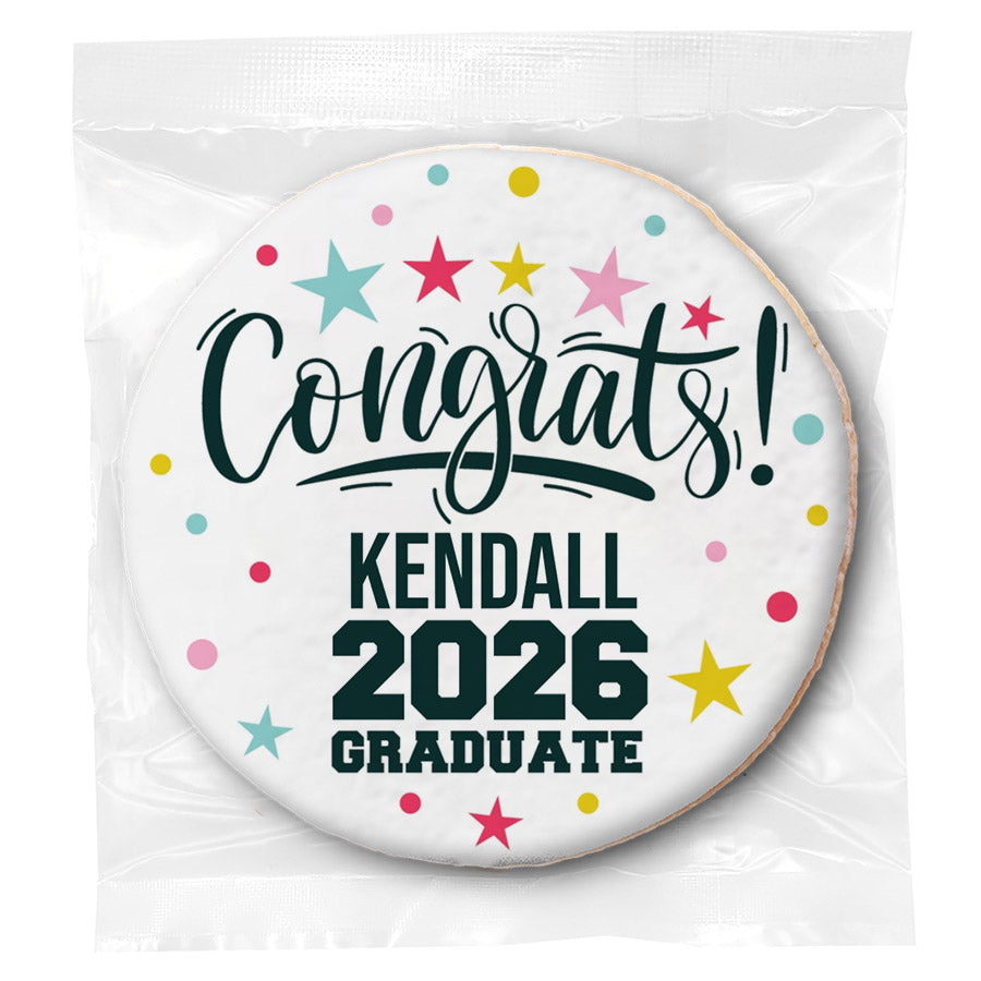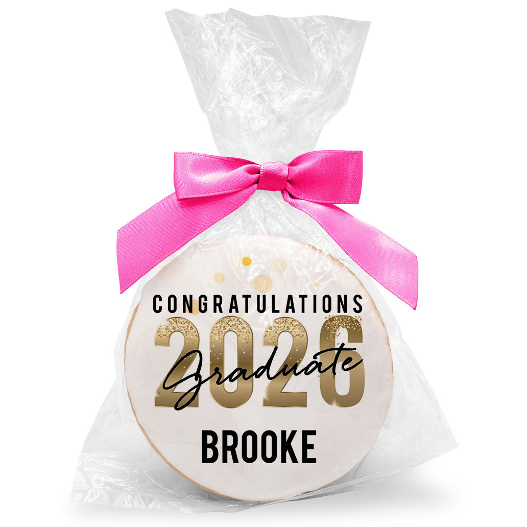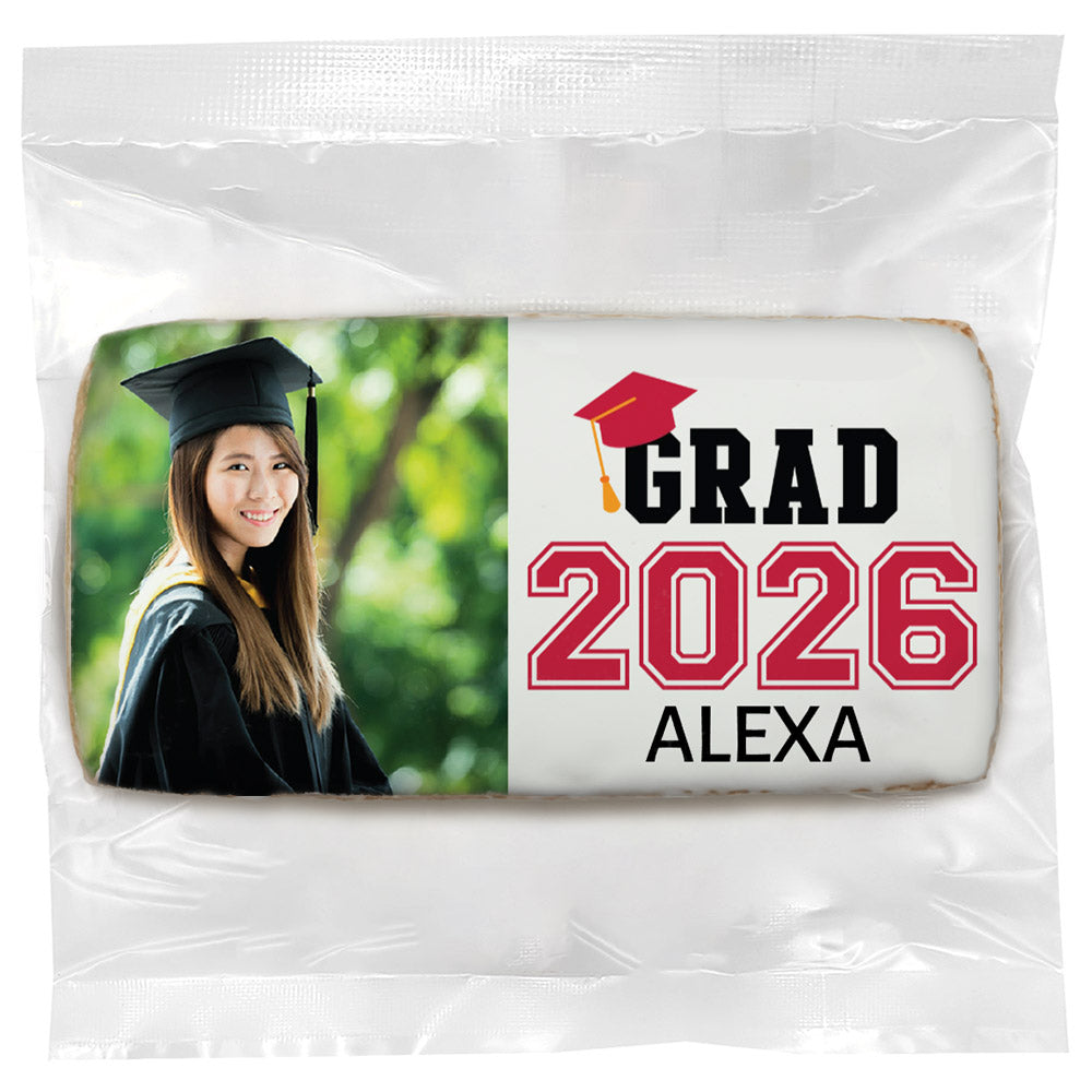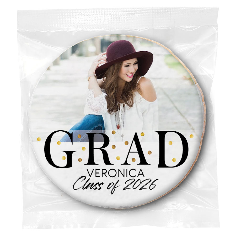 Choose from a wide selection of graduation-themed designs, including caps, diplomas, school colors, and photo graduation cookies. Personalize your grad cookies with a custom message or upload a photo to create a one-of-a-kind graduation treat. With individually wrapped gourmet cookies or mini cookies in bag, these cookies are perfect for party favors, dessert tables, or handouts at graduation events.