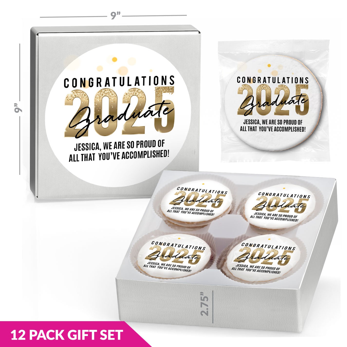 Congrats Gold Sparkle - Gourmet Chocolate Chip or Variety Pack w/ Full Color Personalized Sticker Gift Set