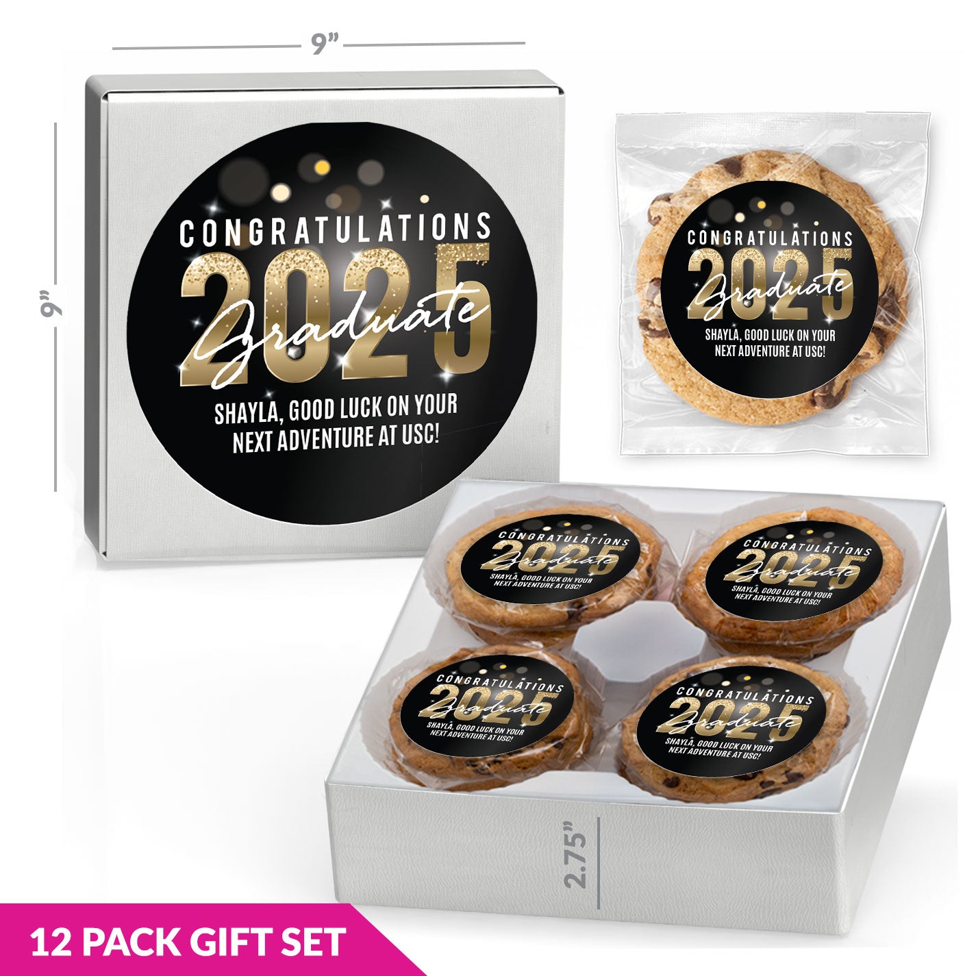Gold Sparkle Congrats - Personalized Direct Print on Round Sugar Cookie Gift Set