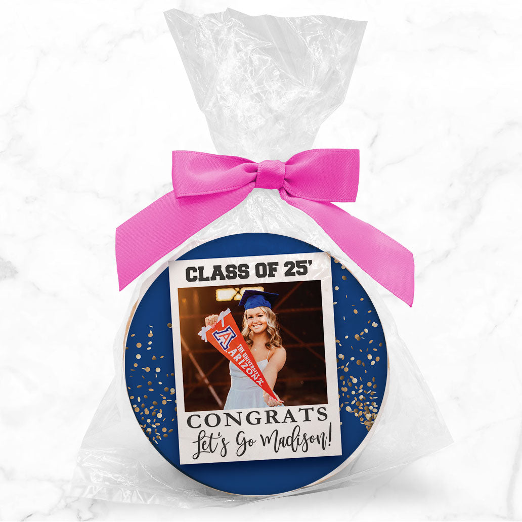 Graduation Polaroid Photo Upload & Message - Gourmet Chocolate Chip Or Variety Pack W/ Full Color Personalized Sticker w/ Gift Bag & Matching Bow