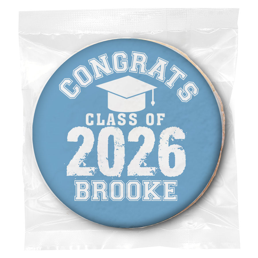 Choose from a wide selection of graduation-themed designs, including caps, diplomas, school colors, and photo graduation cookies. Personalize your grad cookies with a custom message or upload a photo to create a one-of-a-kind graduation treat. With individually wrapped gourmet cookies or mini cookies in bag, these cookies are perfect for party favors, dessert tables, or handouts at graduation events.