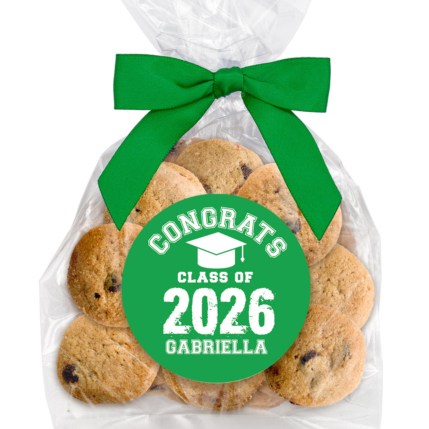 For added variety, gourmet cookies are available in flavors such as classic Chocolate Chip, Chocolate Chip with M&Ms, White Chocolate Macadamia Nut, and more. With multiple flavors available, it’s easy to find graduation cookies that fit your celebration.