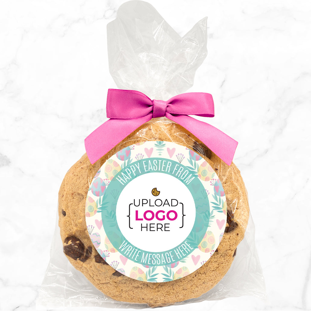 Happy Easter Logo Upload & Message - Gourmet Chocolate Chip Or Variety Pack W/ Full Color Personalized Sticker w/ Gift Bag & Matching Bow