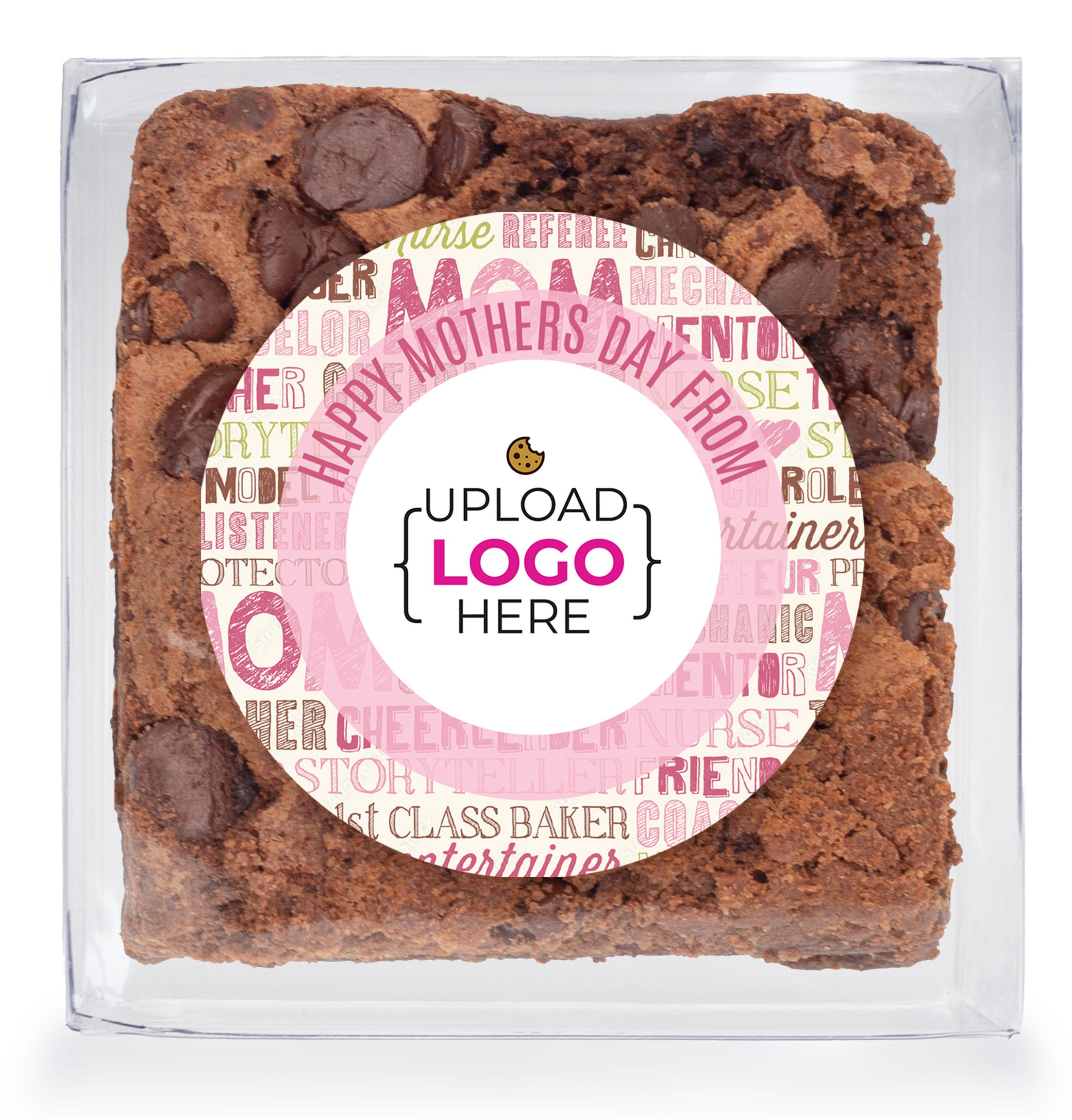Gourmet Chocolate Chip Fudge Brownies – “Happy Mothers Day Logo Upload” with Custom Sticker