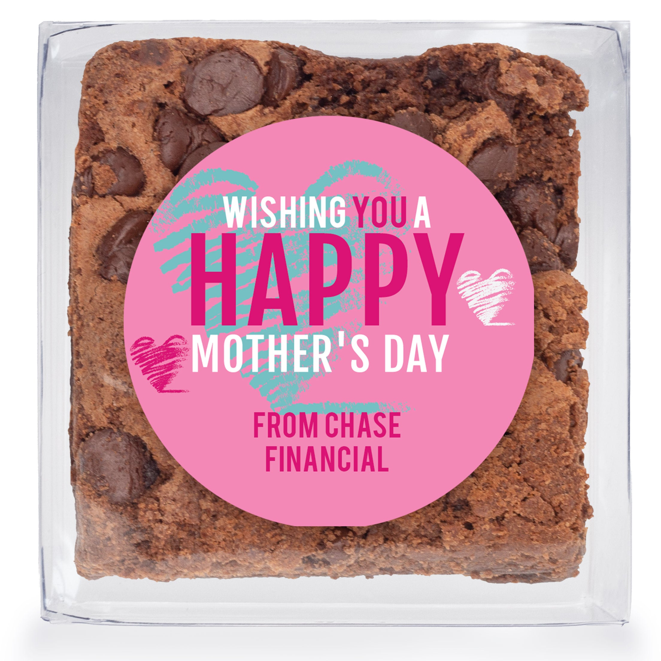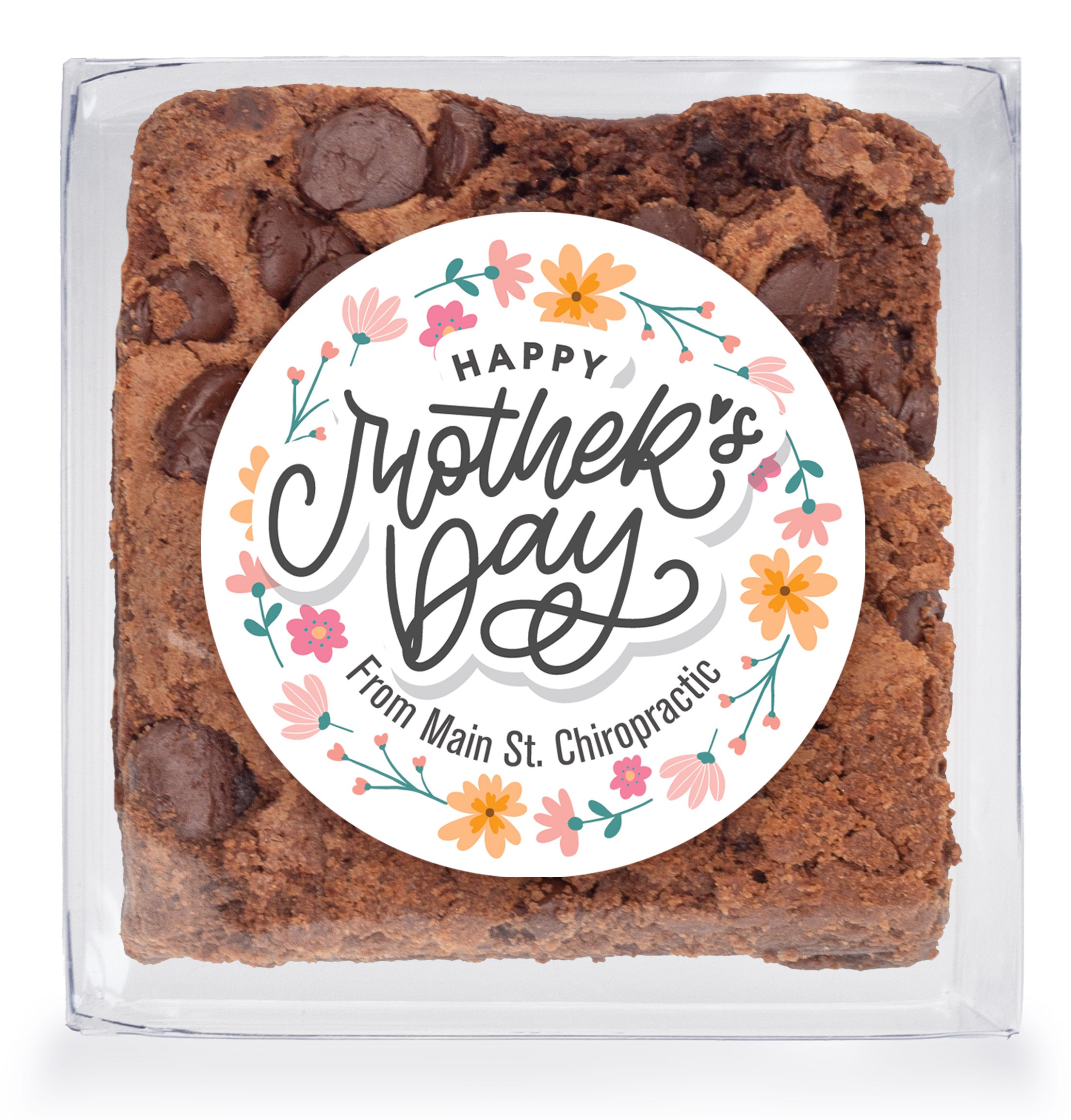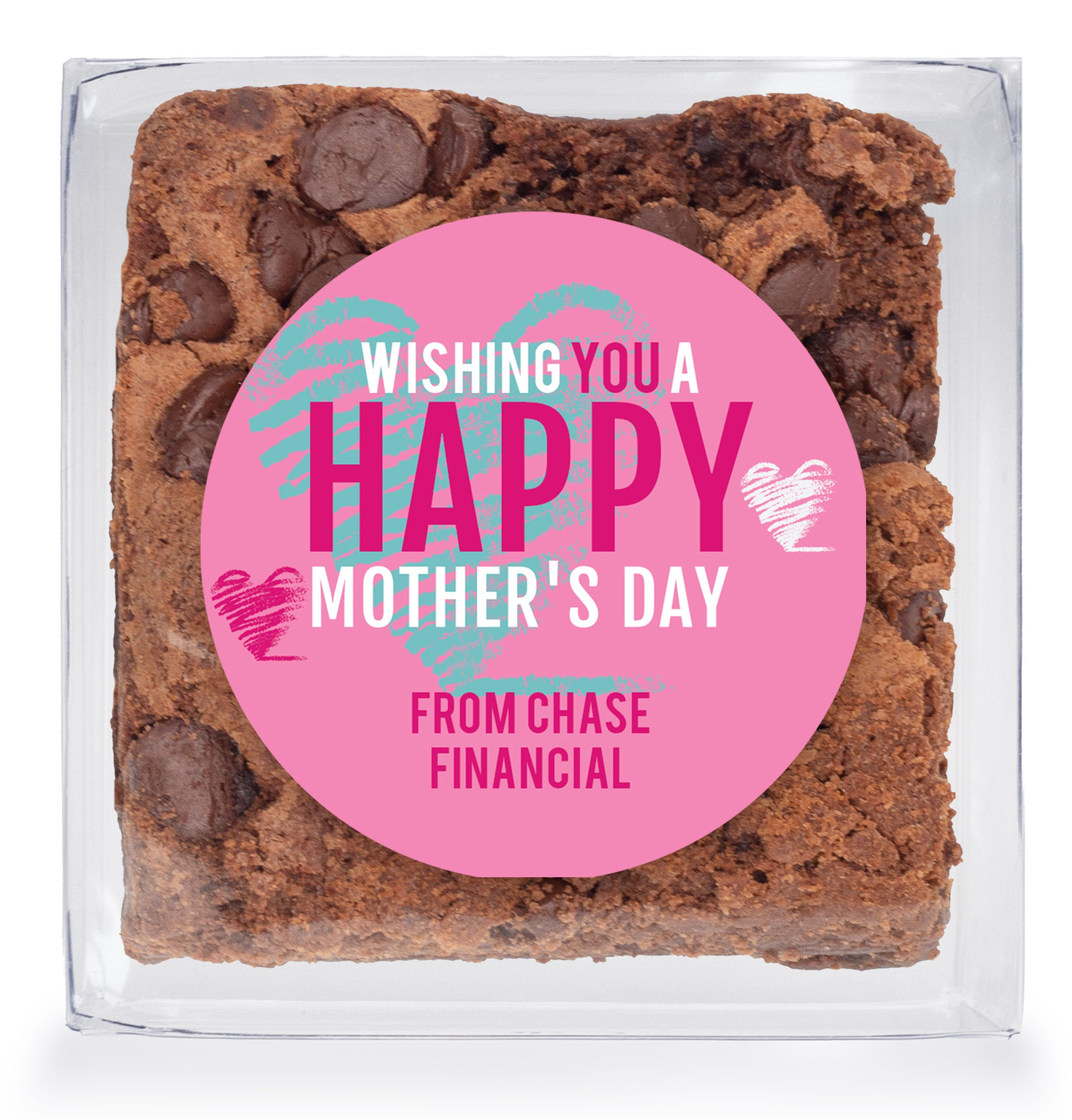 - Custom Brownies: A rich chocolate chip fudge brownie with a full color personalized logo sticker. A delicious alternative for clients and employees who prefer something a little different. Starting at $2.49 each.