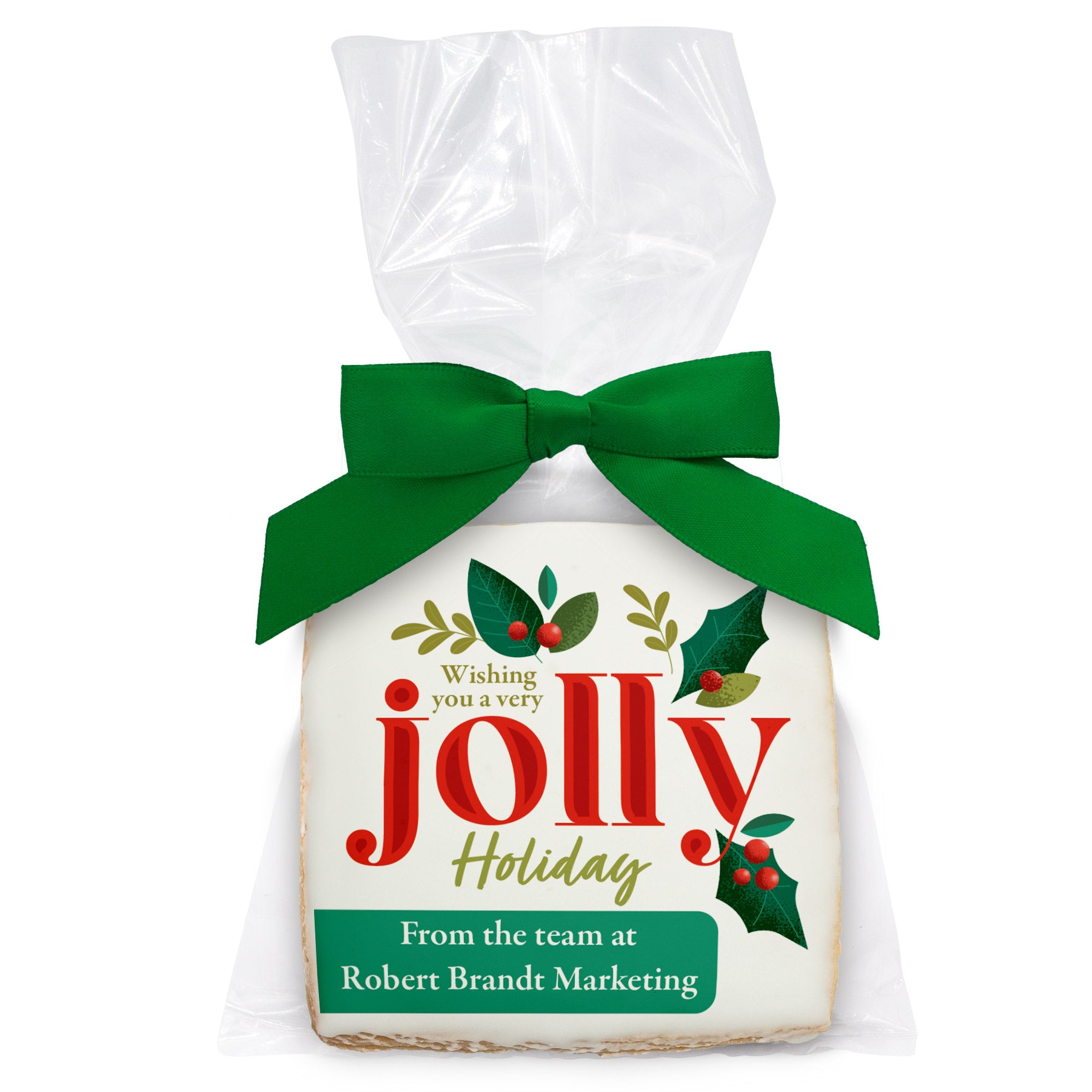 Wishing you a Jolly Holiday - Personalized Direct Print On Square Sugar Cookie w/ Gift Bag & Matching Bow
