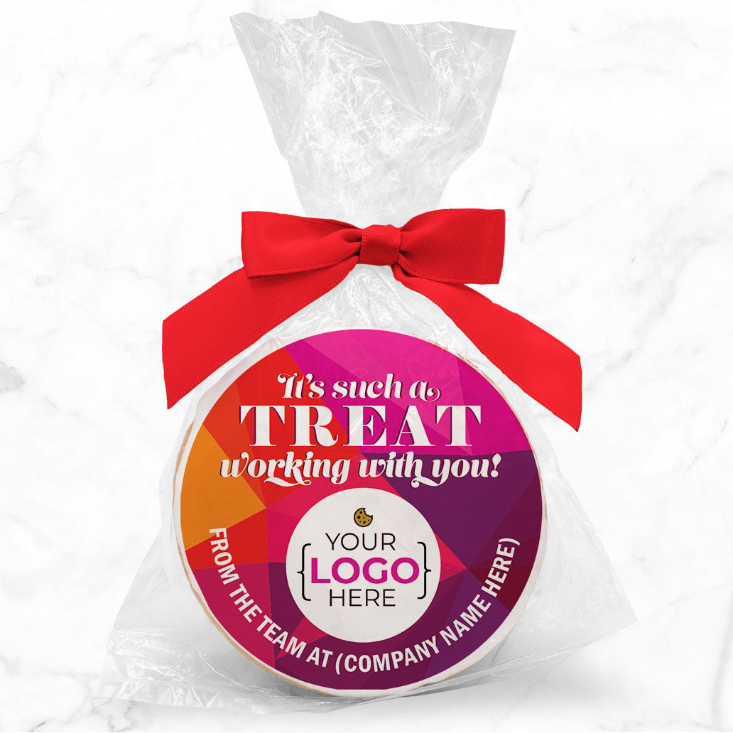 It's a Treat working with you logo upload - Personalized Direct Print On Round Sugar Cookie w/ Gift Bag & Matching Bow
