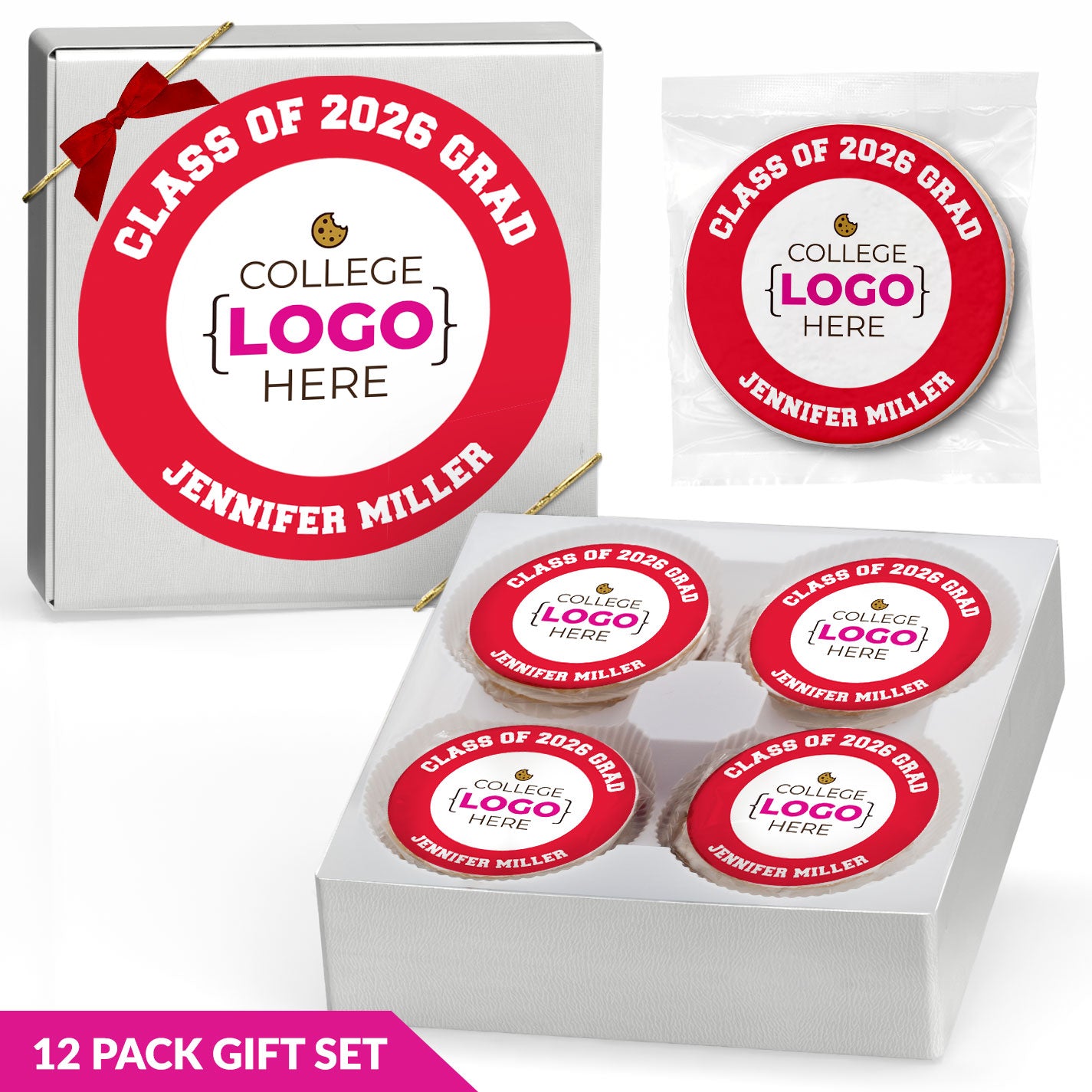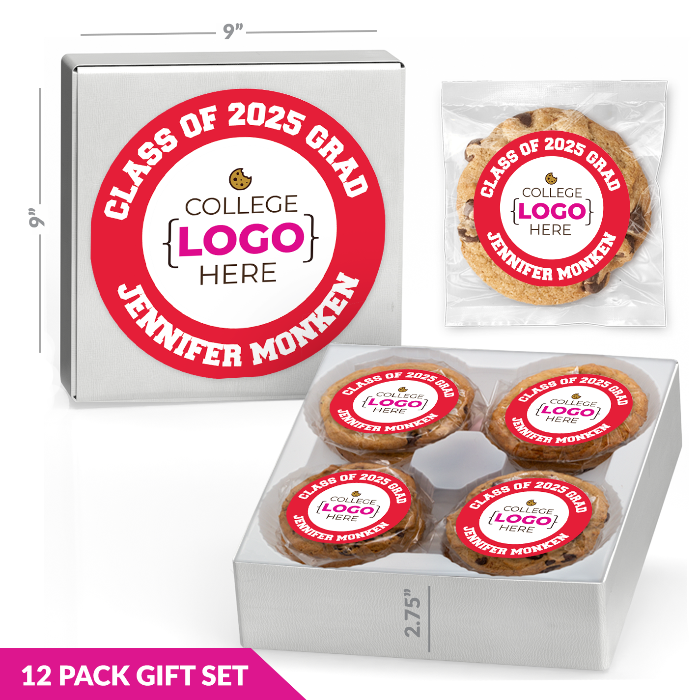 Graduation Build your Own School Logo Upload - Gourmet Chocolate Chip or Variety Pack w/ Full Color Personalized Sticker Gift Box