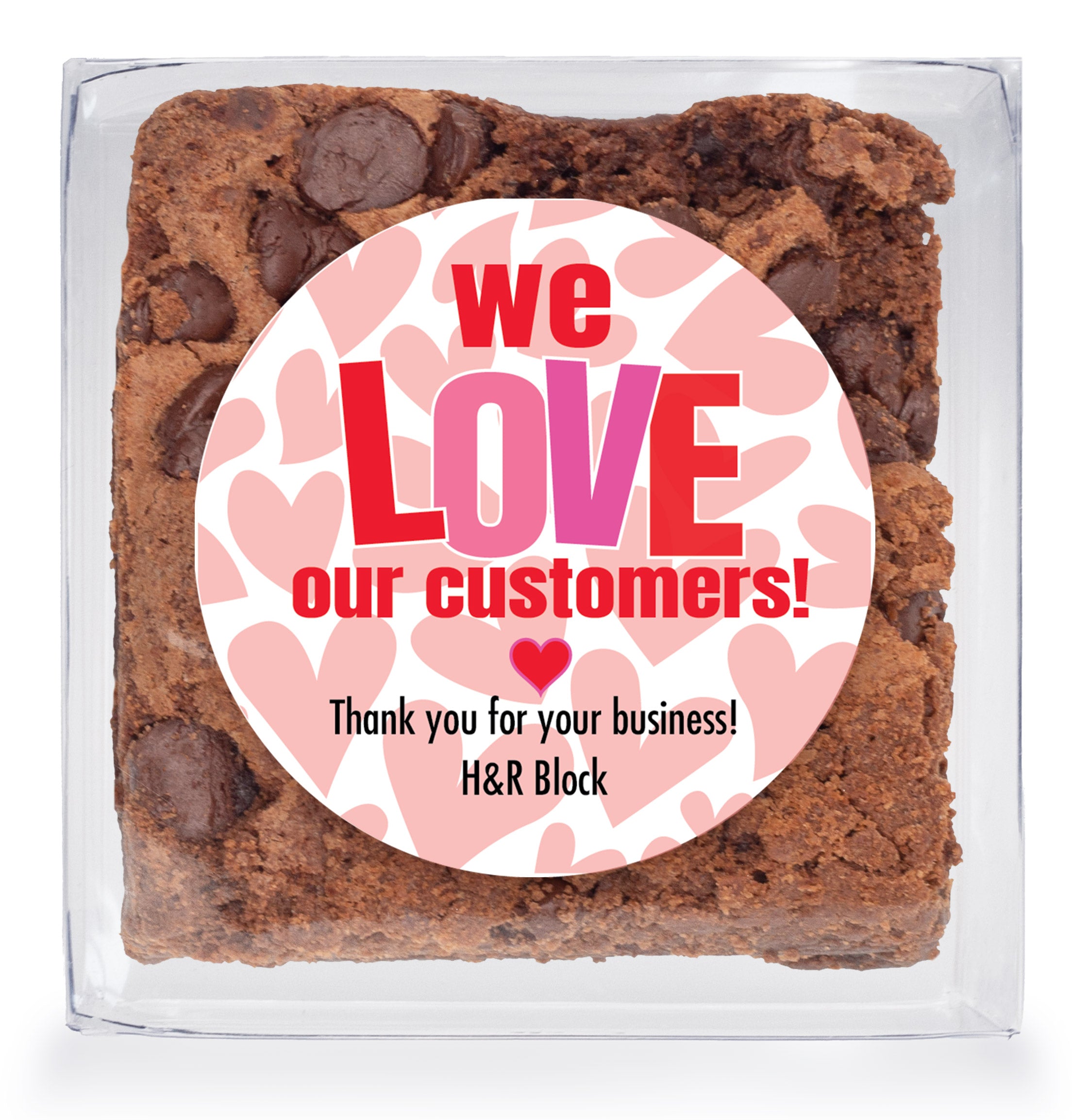 We Love our Customers - Chocolate Chip Fudge Brownies W/Full Color Personalized Sticker
