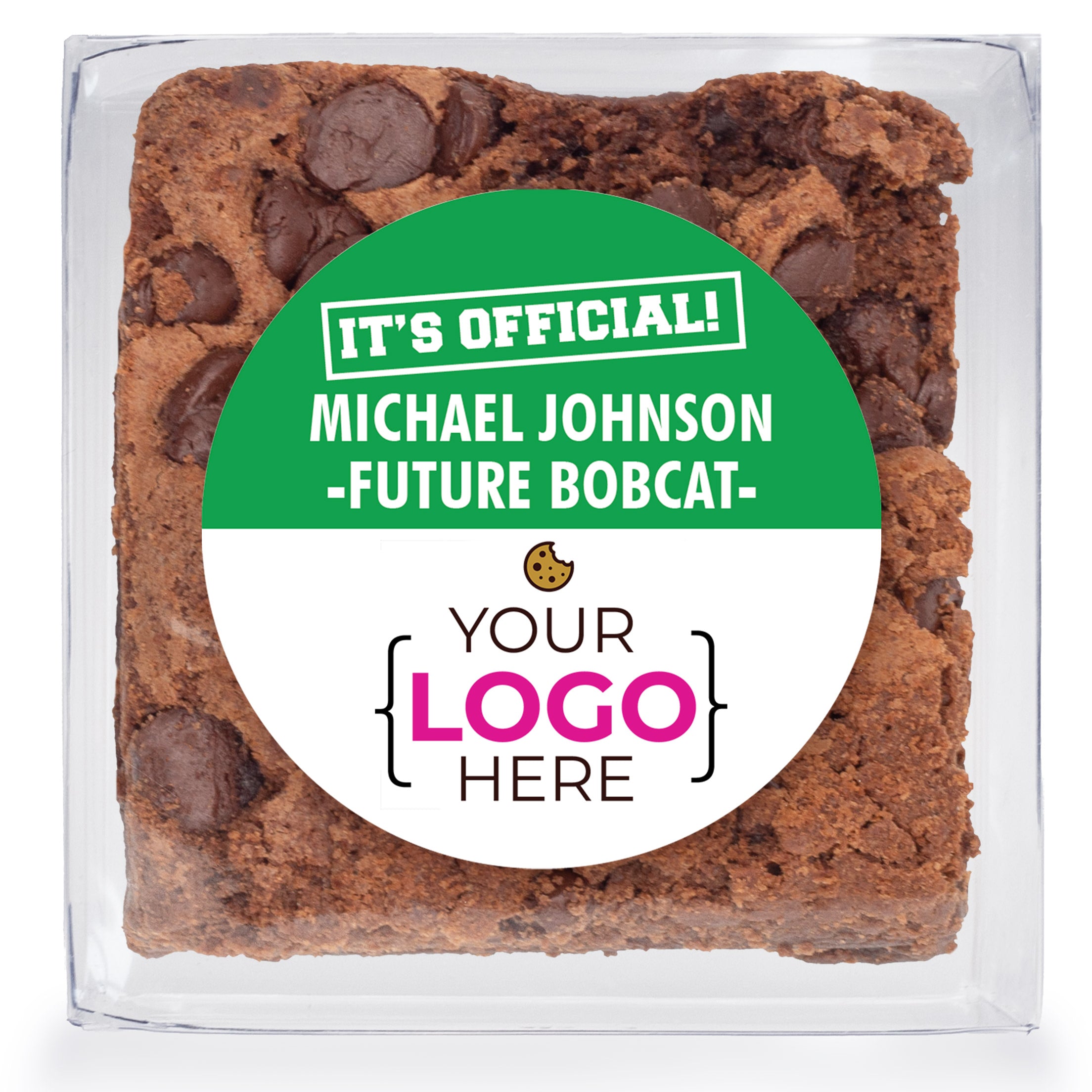 Option 2: Our popular gourmet cookies topped with a bright logo sticker.