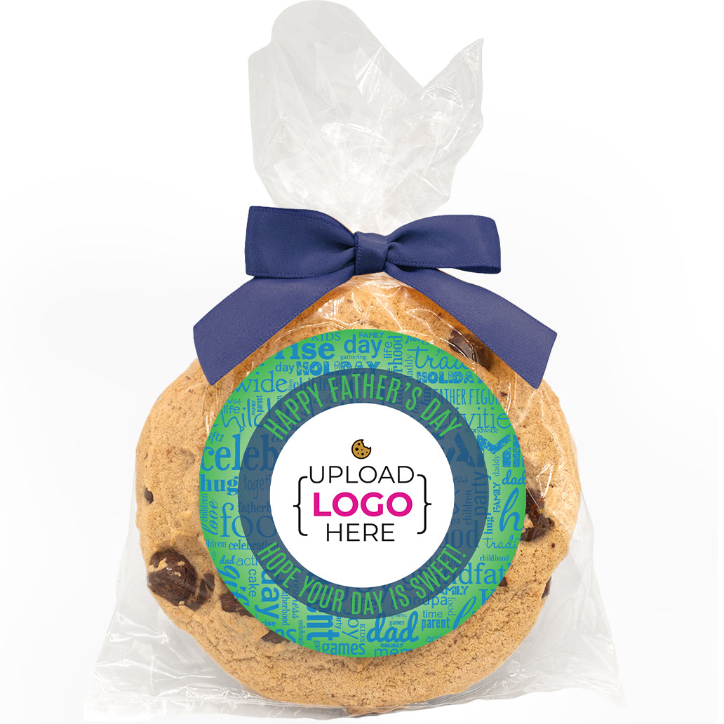 Father's Day Logo Upload - Gourmet Chocolate Chip Or Variety Pack W/ Full Color Personalized Sticker w/ Gift Bag & Matching Bow