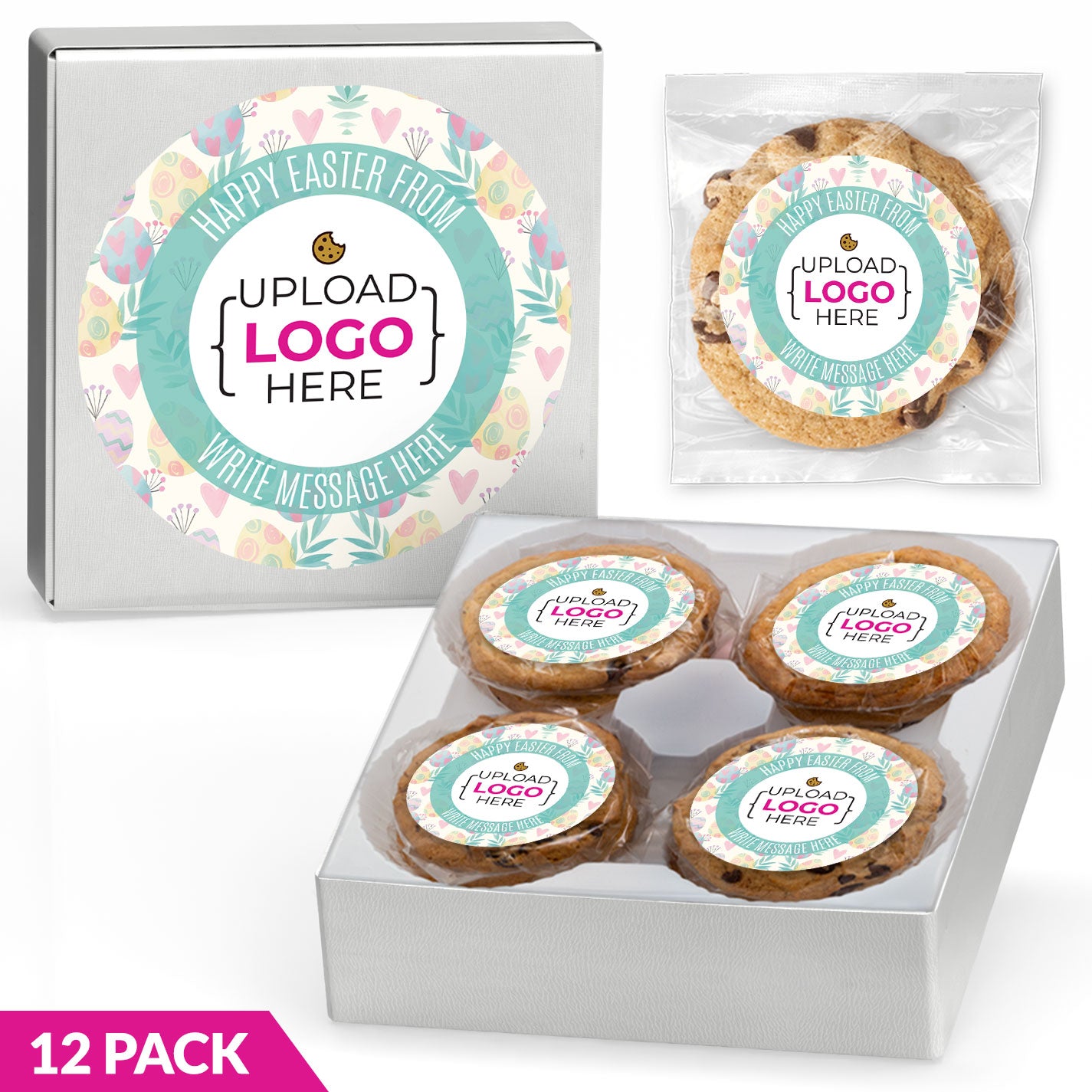 Happy Easter Logo Upload & Message - Gourmet Chocolate Chip or Variety Pack w/ Full Color Personalized Sticker Gift Set