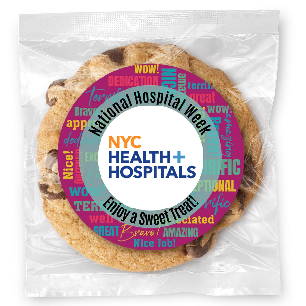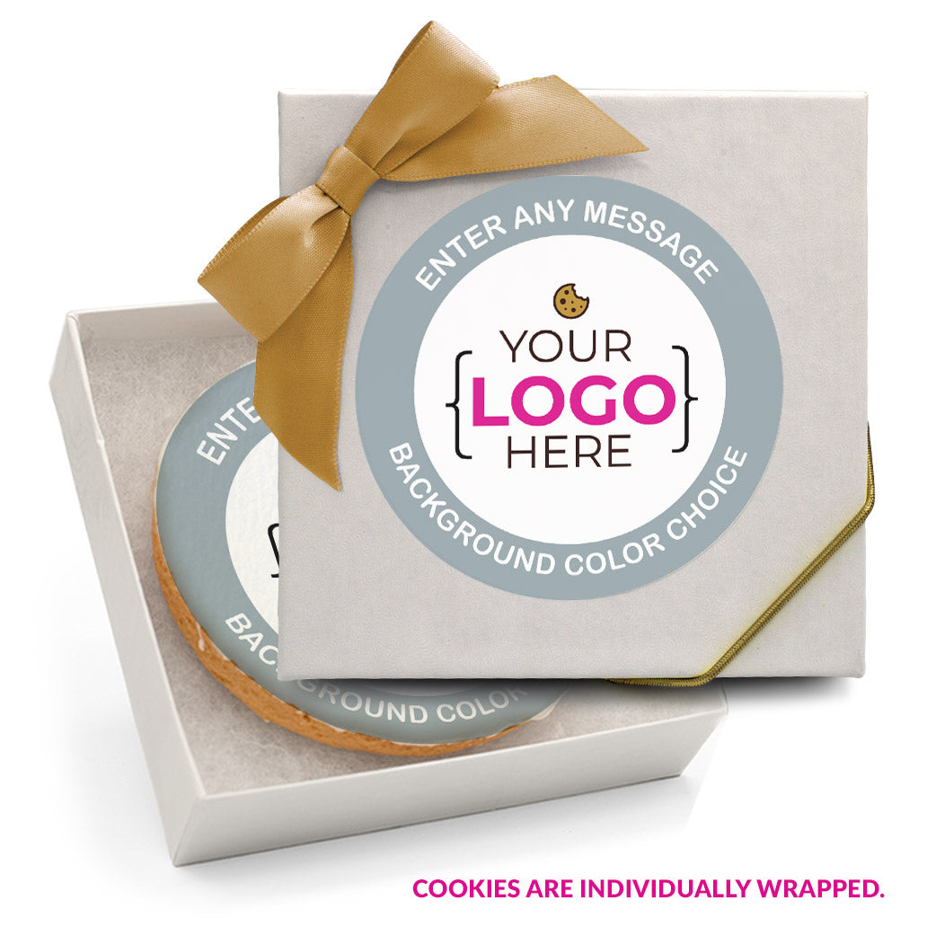 - Individually wrapped 3 inch custom-printed sugar cookies.