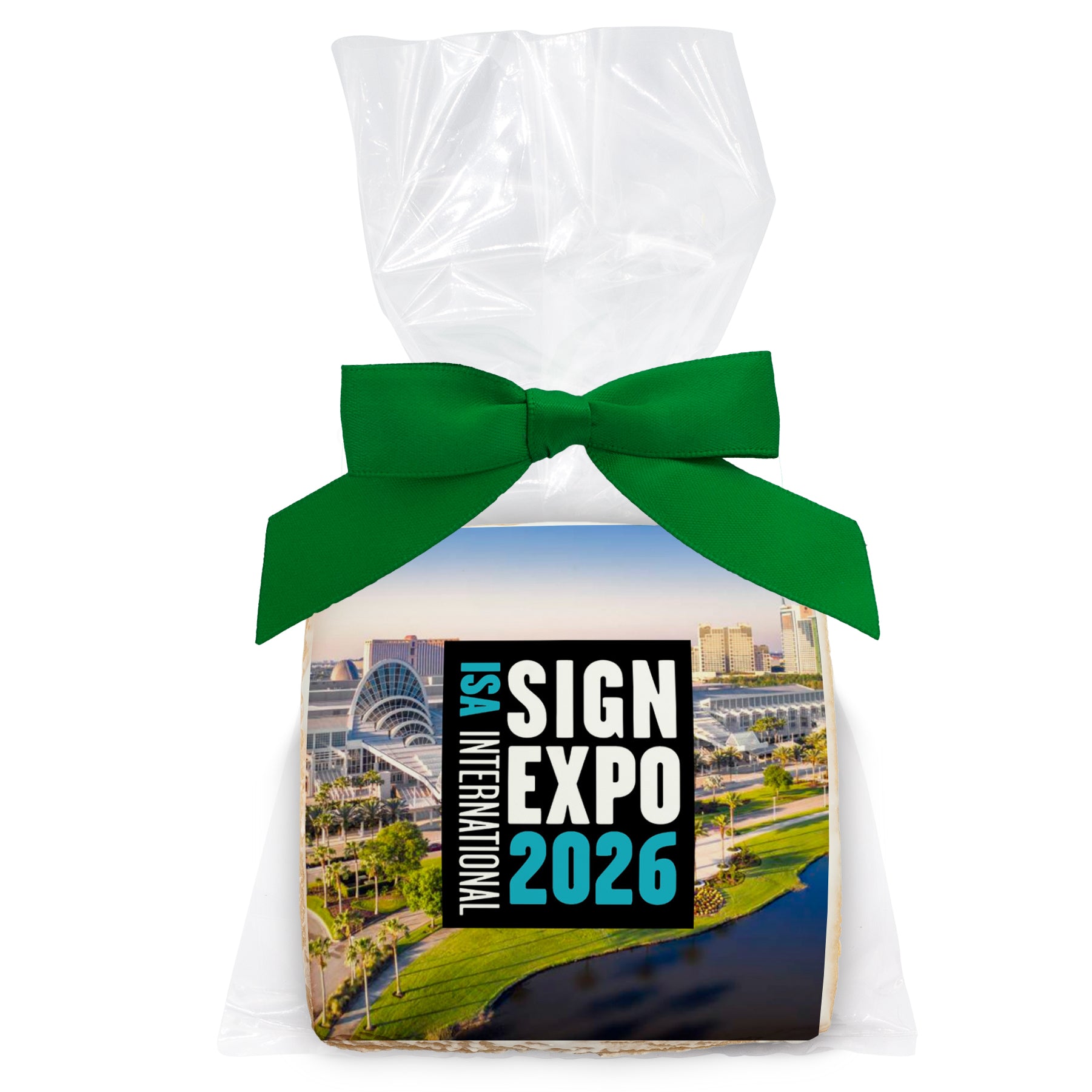 Trade Show Logo Upload - Personalized Direct Print On Square Sugar Cookie w/ Gift Bag & Matching Bow