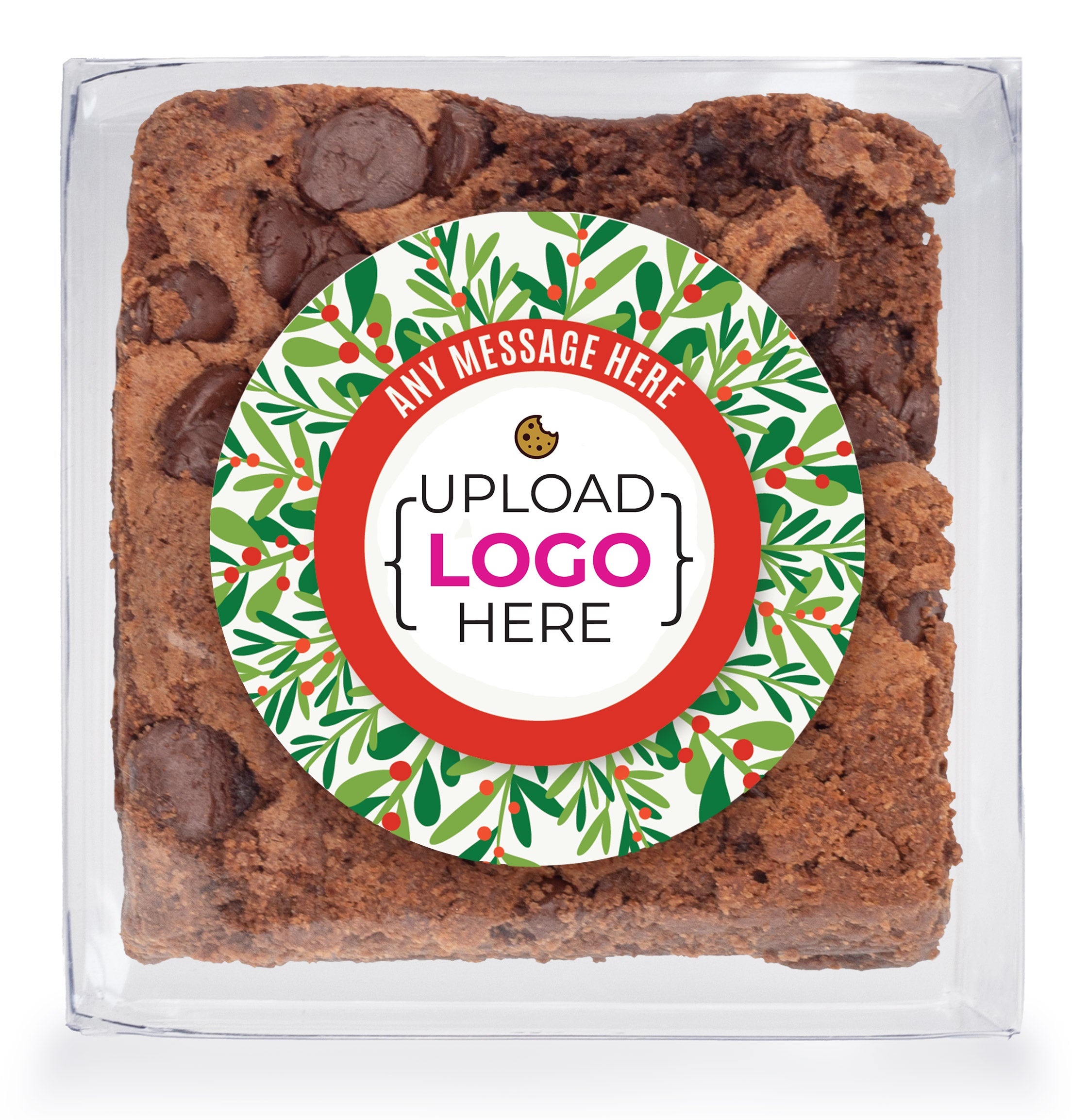 Wreath Logo Upload & Message - Chocolate Chip Fudge Brownies W/Full Color Personalized Sticker