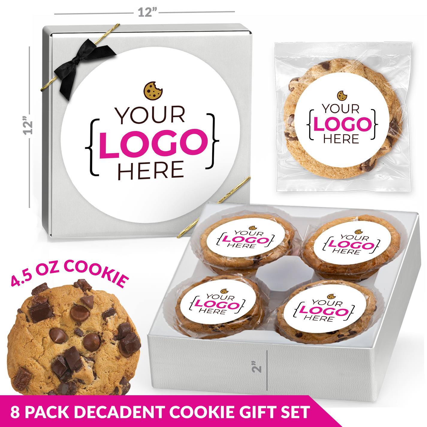 Elevate your corporate gifts with our Business Logo Cookies Gift Box, featuring 12 individually wrapped gourmet cookies customized with your company branding. Choose between direct-printed logo cookies on royal icing or delicious cookie assortments with your logo on each wrapper. Each corporate logo cookies gift box includes a matching 7" personalized box sticker, creating a professional presentation for clients, employees, and partners.