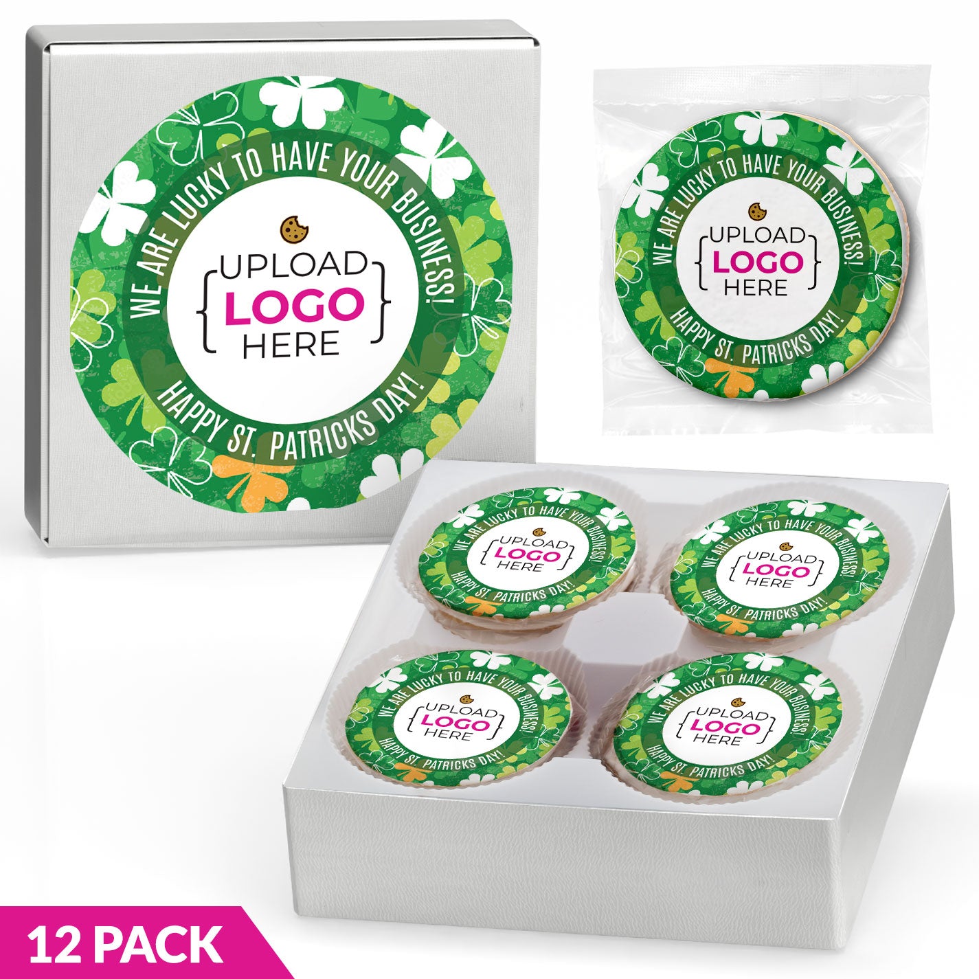 Shamrock Pattern Logo Upload - Personalized Direct Print on Round Sugar Cookie Gift Set