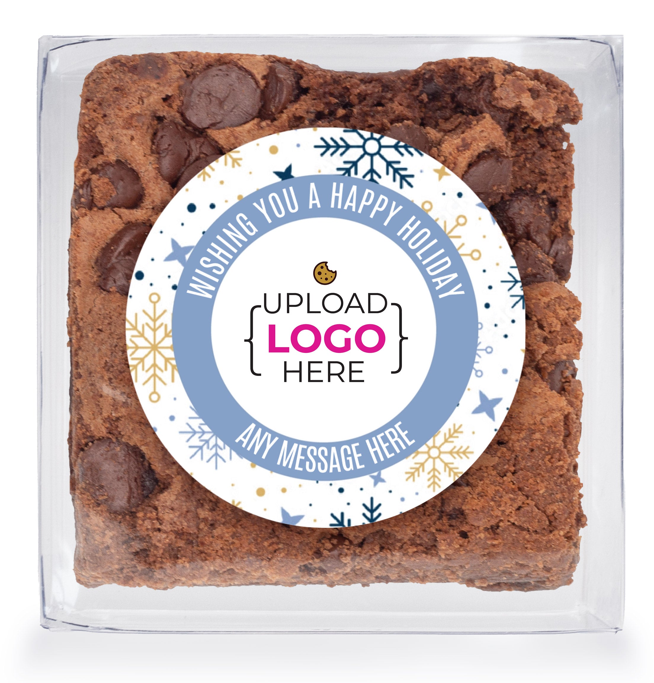 Happy Holidays Logo Upload - Chocolate Chip Fudge Brownies W/Full Color Personalized Sticker