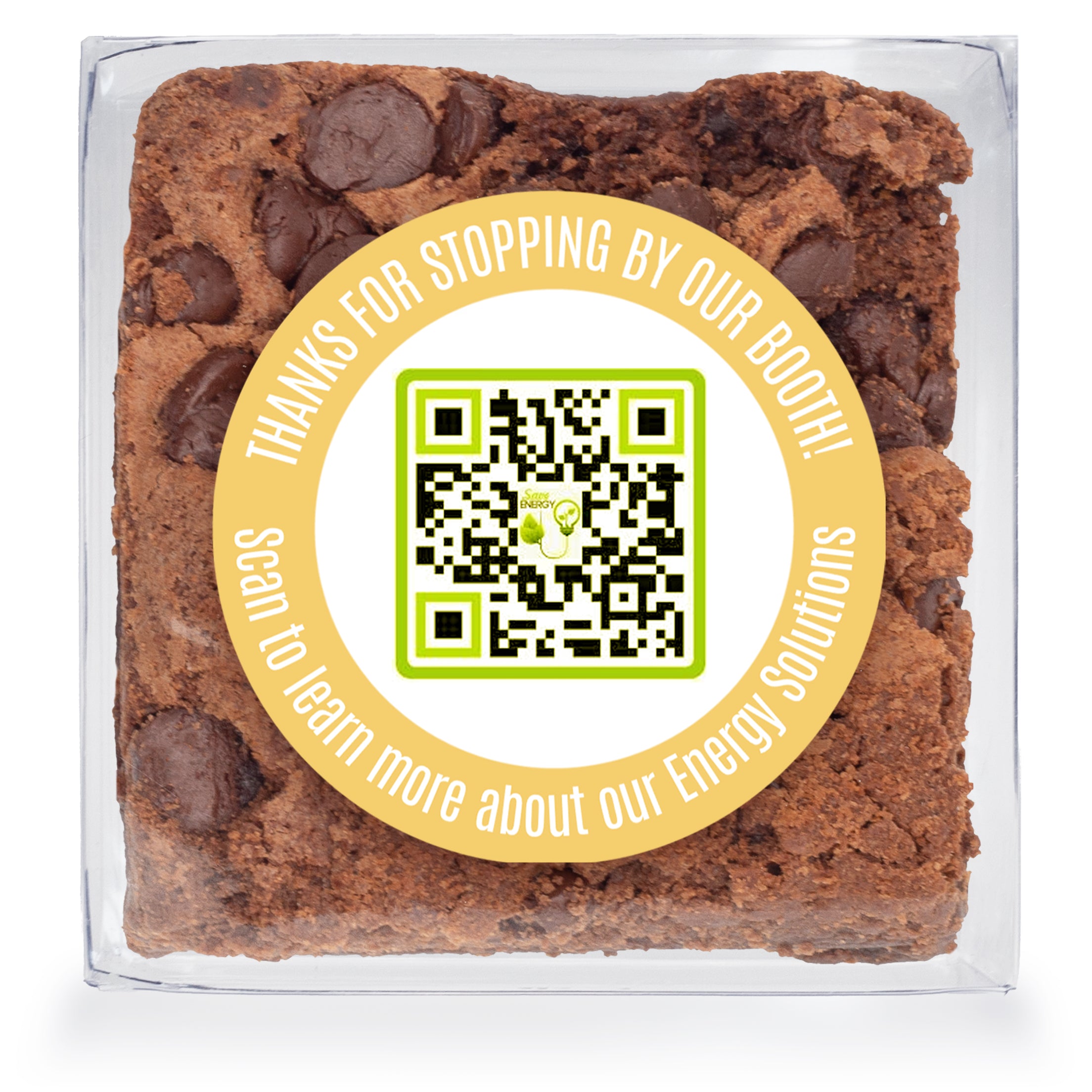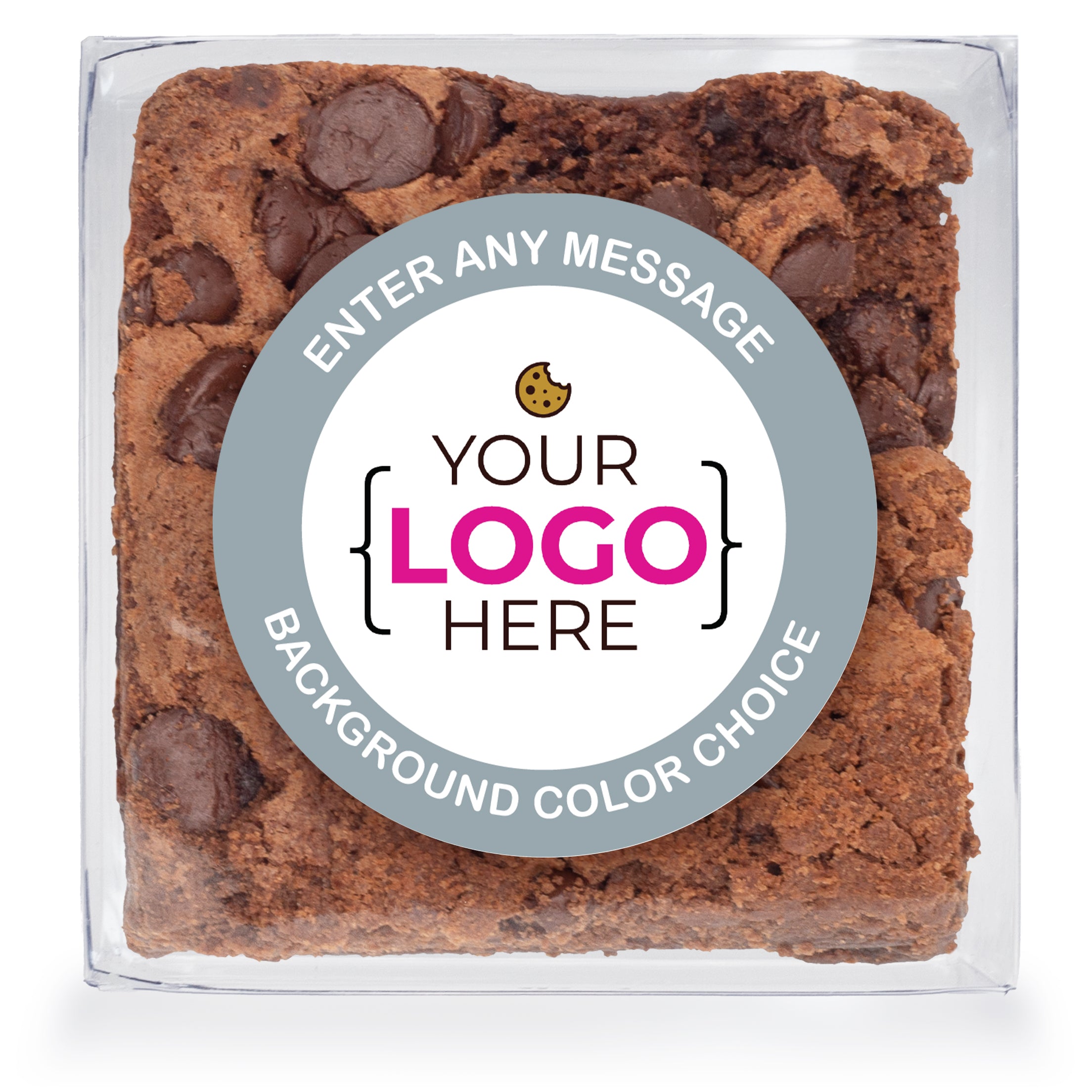 - Each Brownie is in a clear plastic box & personalized with a full color sticker.