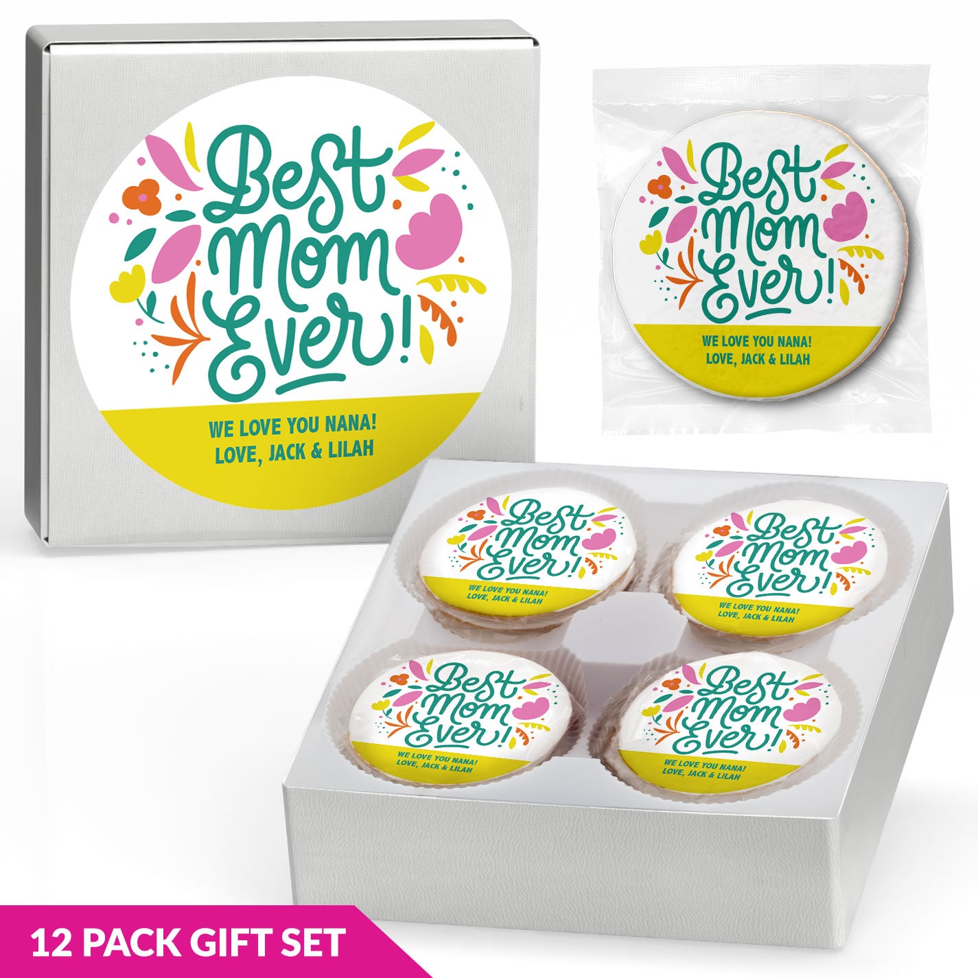 Best Mom Ever - Personalized Direct Print on Round Sugar Cookie Gift Set
