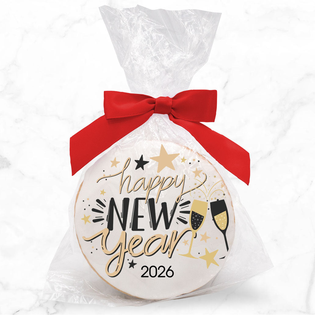 Ring in the new year with our festive, personalized New Year's Eve cookies! Made with premium ingredients including real butter and sugar, these decorated cookies are perfect for countdown parties, family gatherings, and midnight celebrations. Choose from our royal icing sugar cookies with elegant champagne glass images or indulge in decadent flavors like Chocolate Chunk or Salted Caramel cookies to make your New Year's celebrations memorable.