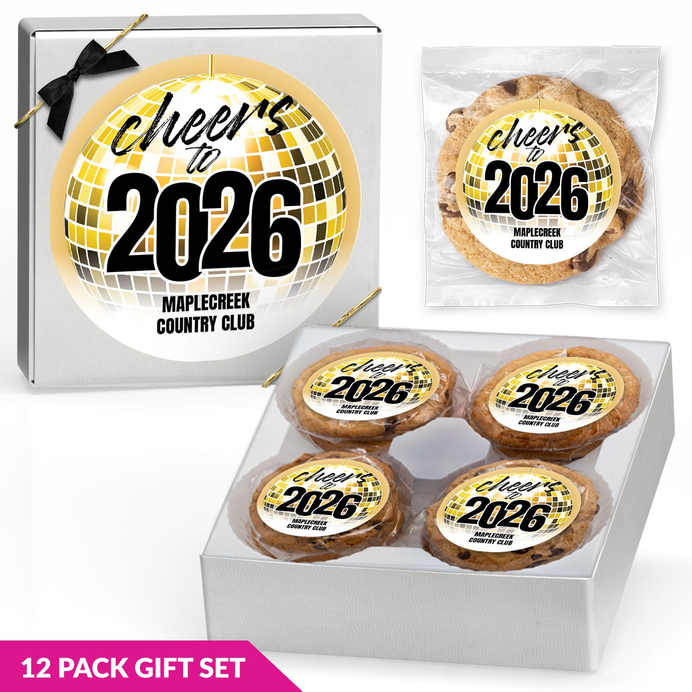 NYE 2026 Logo Upload & Message - Gourmet Chocolate Chip or Variety Pack w/ Full Color Personalized Sticker Gift Set