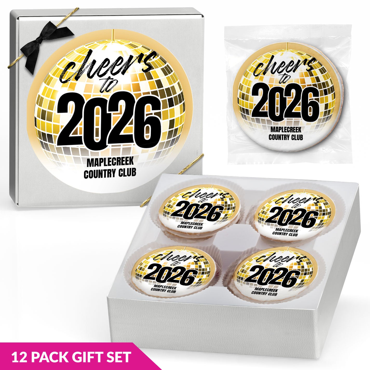NYE Cheers Disco Ball - Personalized Direct Print on Round Sugar Cookie Gift Set