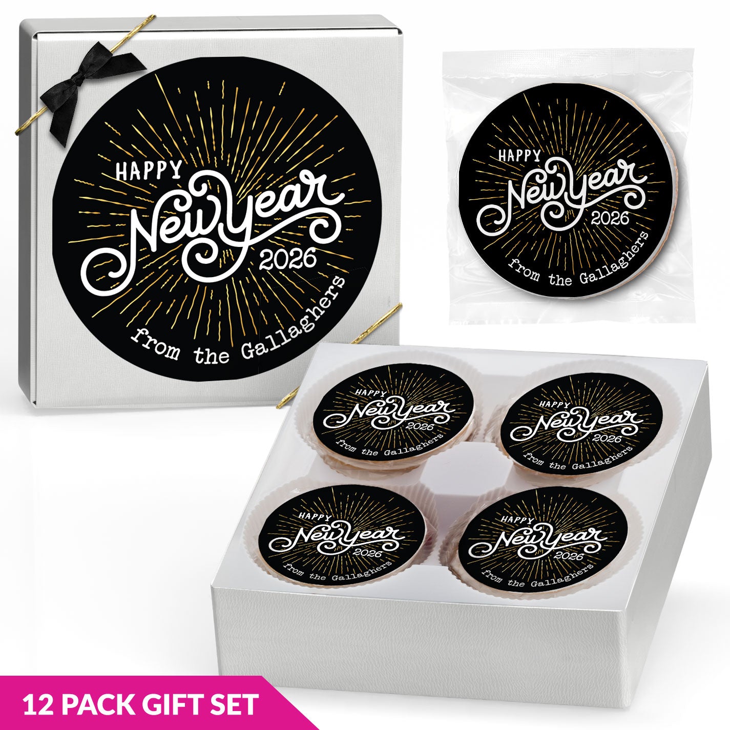 Happy New Year Starburst - Gourmet Chocolate Chip or Variety Pack w/ Full Color Personalized Sticker Gift Set