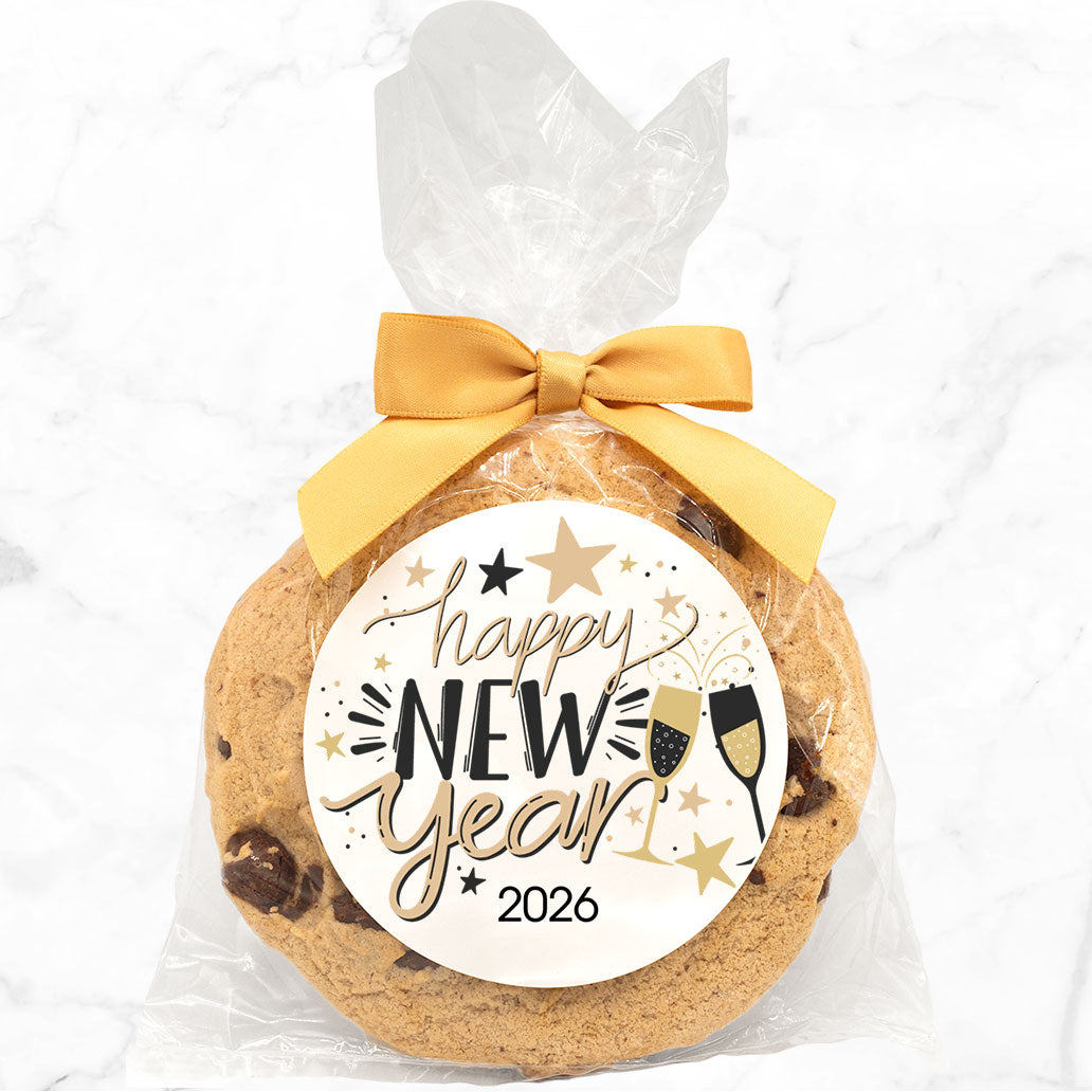 Happy New Year Cheer - Personalized Direct Print On Round Sugar Cookie w/ Gift Bag & Matching Bow