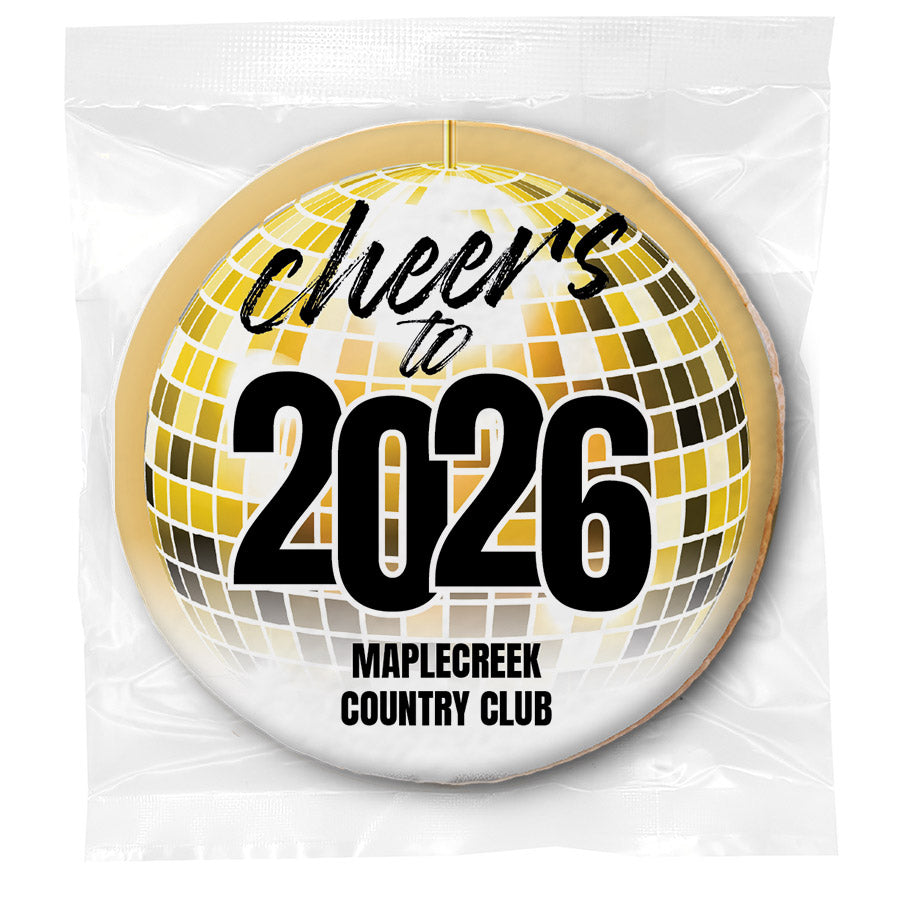NYE Cheers Disco Ball - Gourmet Chocolate Chip Or Variety Pack W/ Full Color Personalized Sticker