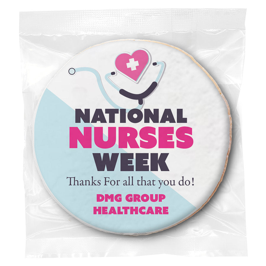 Make Nurse Week memorable with custom cookies that express gratitude for their dedication. Our corporate gifts come in various box sizes - order a dozen to share with the entire nursing staff! Each cookie is individually wrapped for convenient packaging and distribution. Add a personalized message to thank nurses for their life-changing work and commitment to patient care.