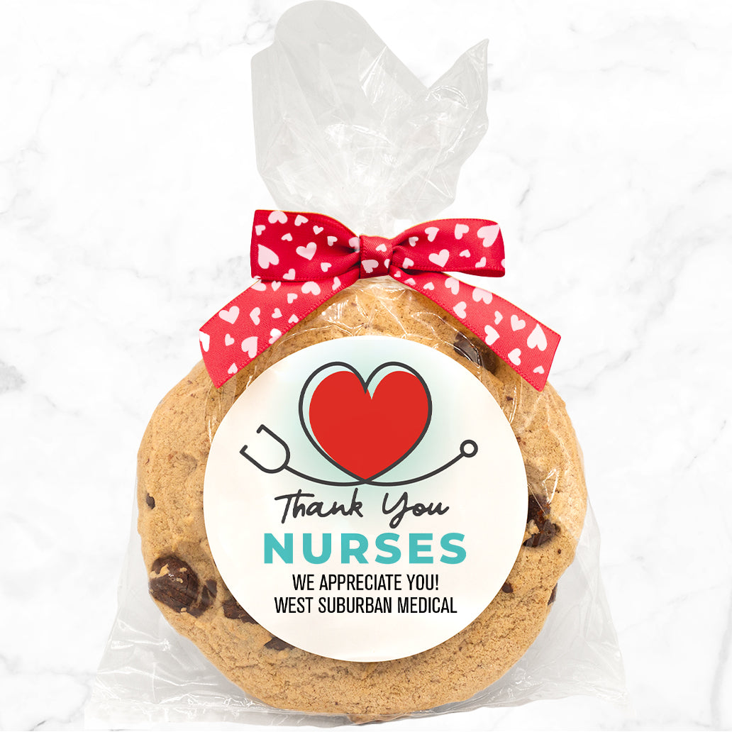 Thank You Nurses Heart Stethoscope - Gourmet Chocolate Chip Or Variety Pack W/ Full Color Personalized Sticker w/ Gift Bag & Matching Bow