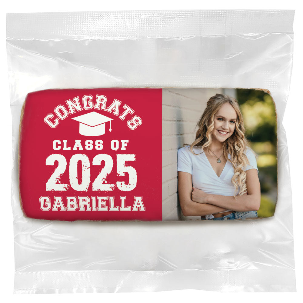 Personalized Graduation "Congrats Class of" Direct Print on Rectangle Sugar Cookies: Extend congratulations to the graduating class with our personalized cookies featuring the message "Congrats Class Of" on rectangular sugar cookies, perfect for graduation ceremonies or receptions.