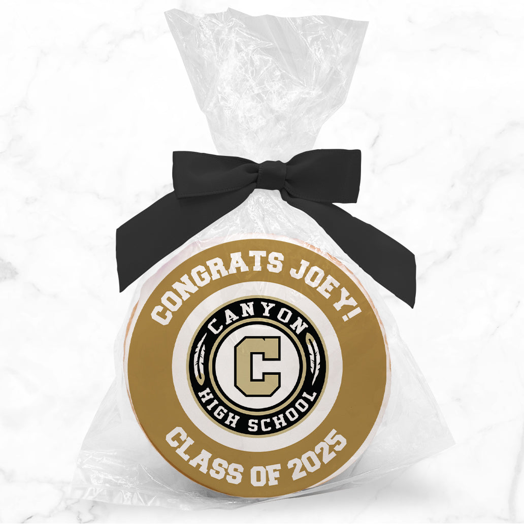 Graduation Build your Own School Logo Upload - Personalized Direct Print On Round Sugar Cookie w/ Gift Bag & Matching Bow