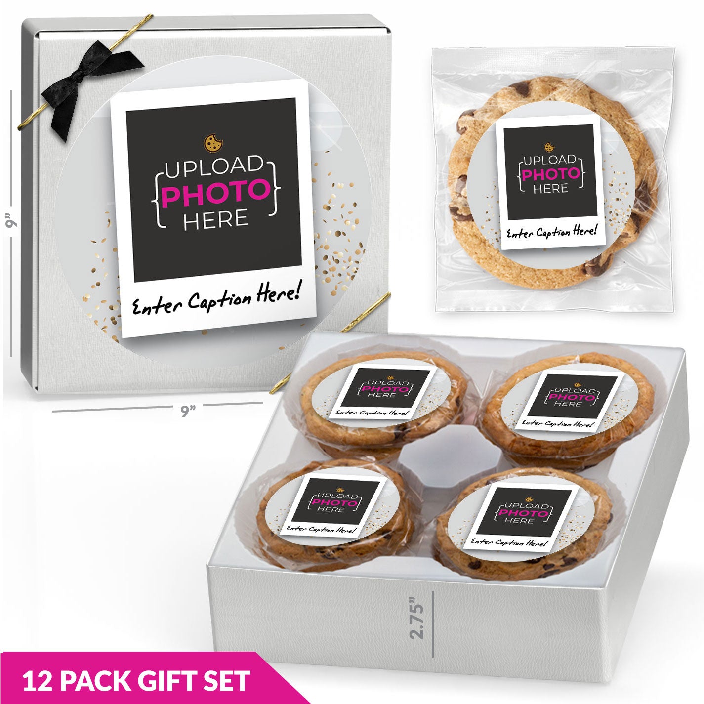Upload your own Photo - Polaroid & Caption - Gourmet Chocolate Chip or Variety Pack w/ Full Color Personalized Sticker Gift Set
