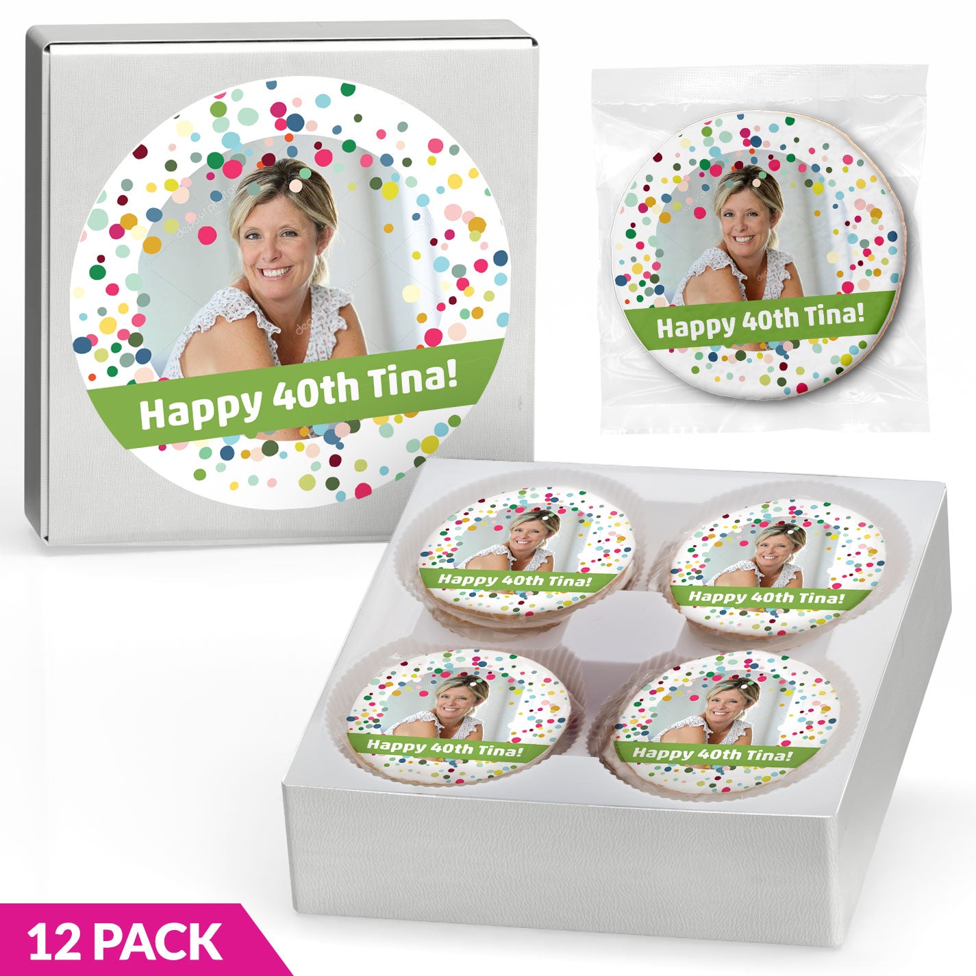 Birthday Confetti Photo Upload & Message - Gourmet Chocolate Chip or Variety Pack w/ Full Color Personalized Sticker Gift Set