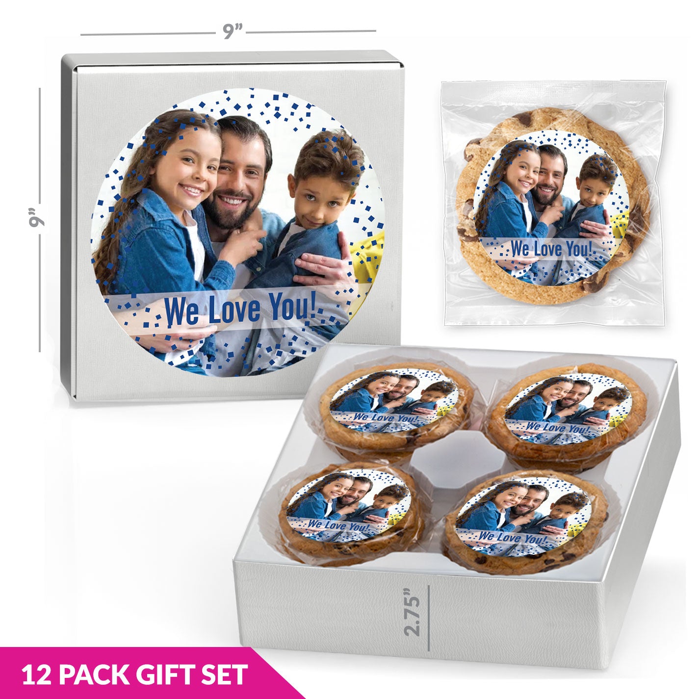 Father's Day "We Love You" Photo Upload - Gourmet Chocolate Chip or Variety Pack w/ Full Color Personalized Sticker Gift Set