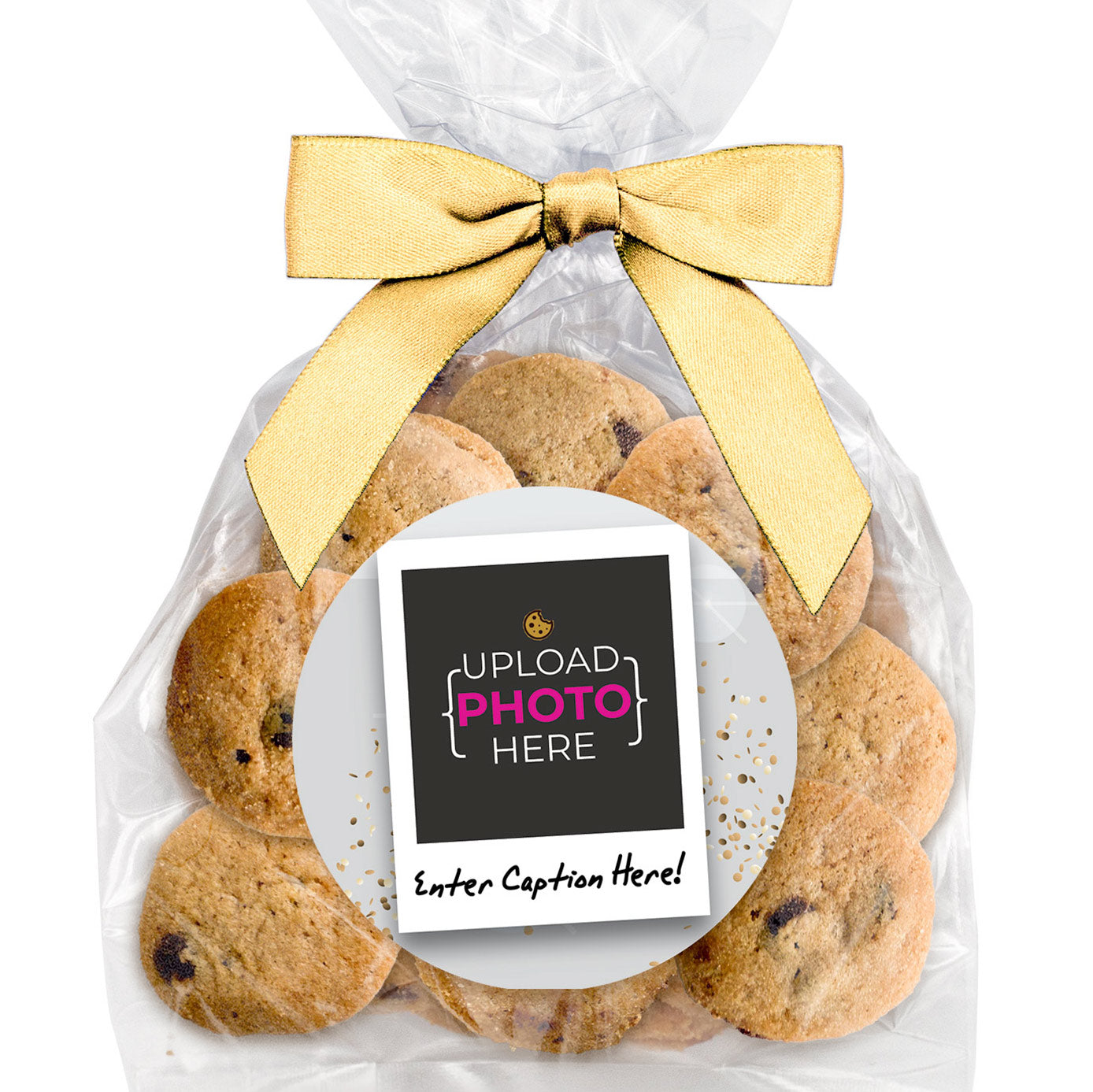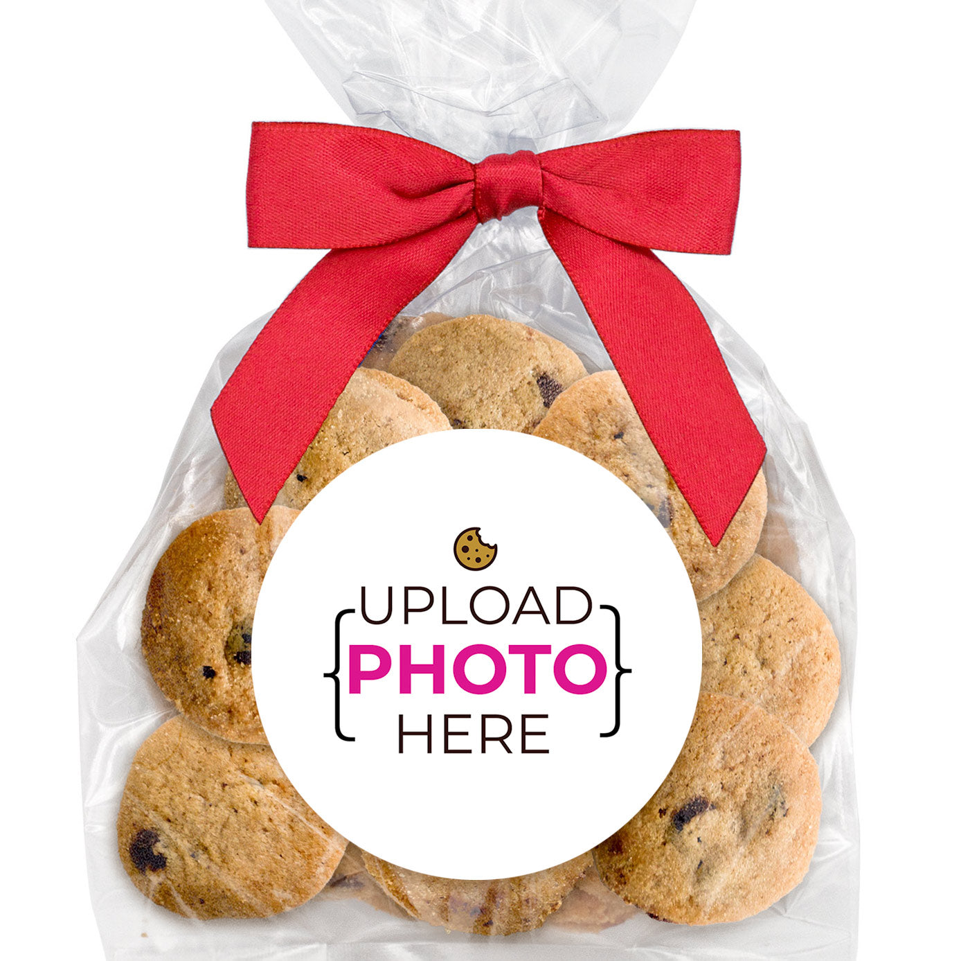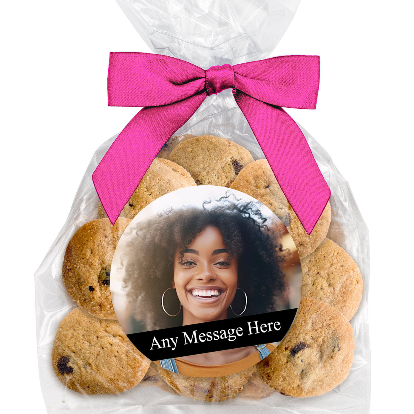 For a rich, gourmet treat, choose our photo cookies topped with a full-color printed sticker. Available in Chocolate Chip, Gluten-Free, Vegan, and other specialty flavors, these cookies are individually wrapped and perfect for gifting or events.