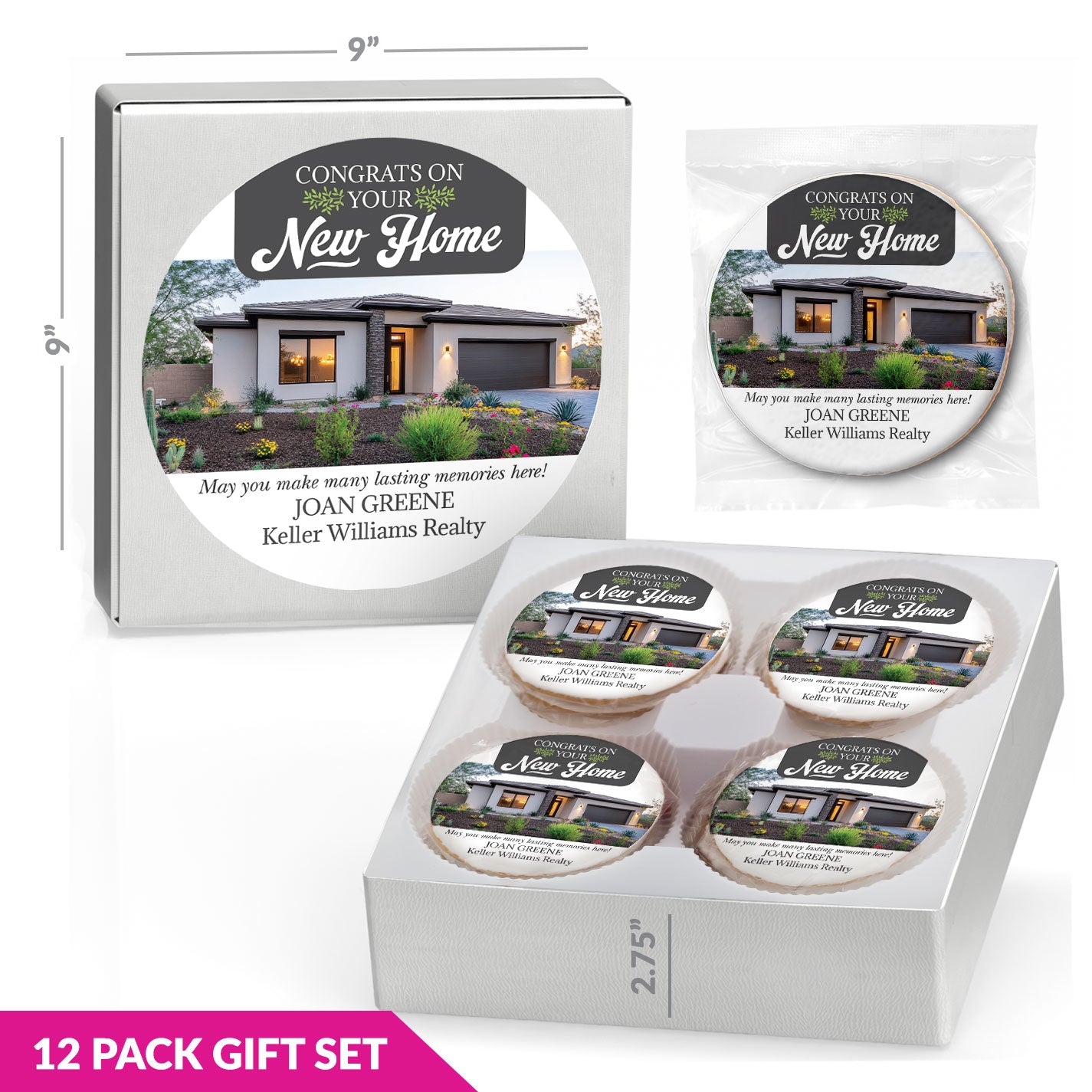 Congrats on your new home Photo Upload - Personalized Direct Print on Round Sugar Cookie Gift Set
