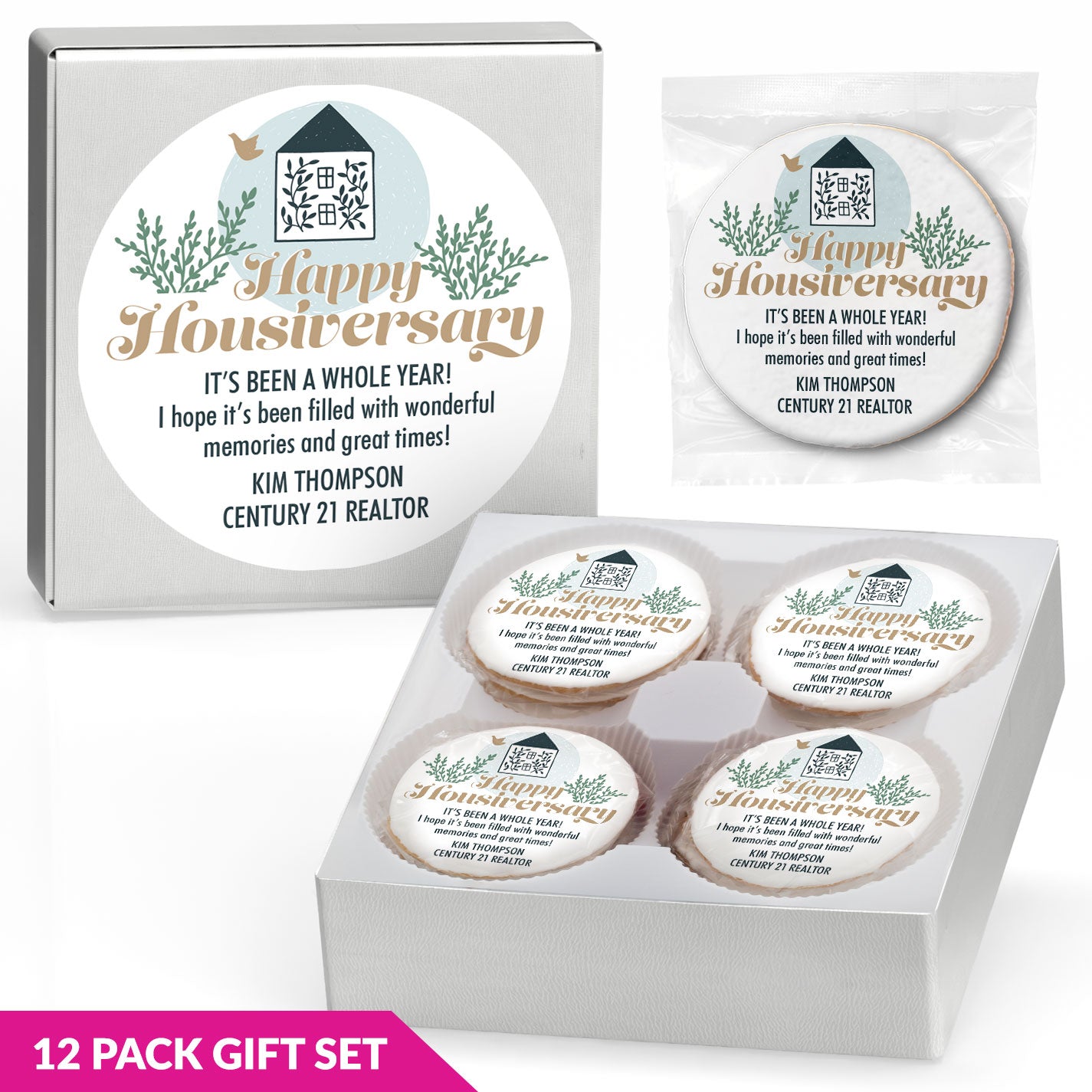 Happy 1 Year Housiversary Realtor - Personalized Direct Print on Round Sugar Cookie Gift Set