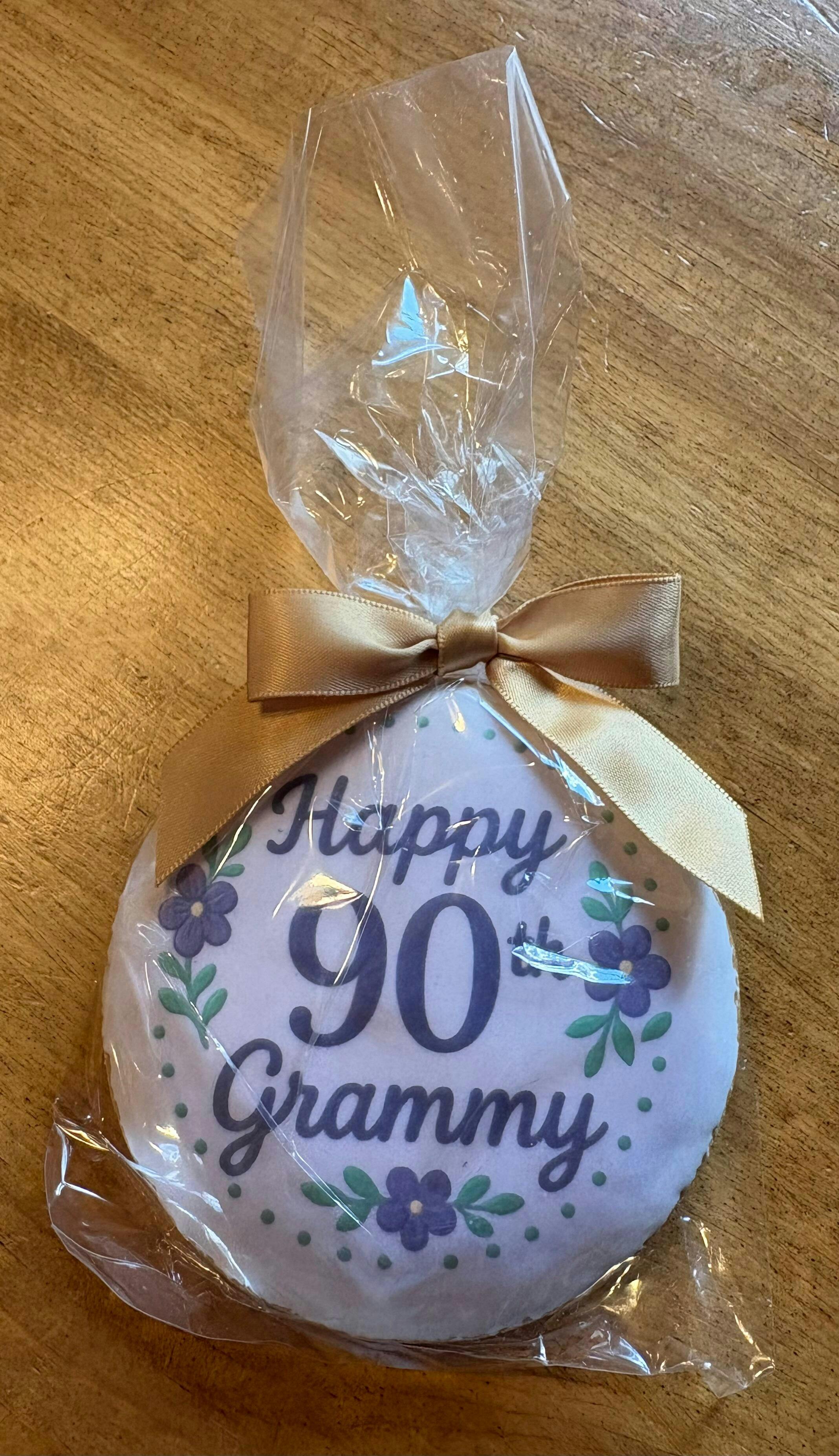 - Individually wrapped 2 oz. (3 inch) custom-printed sugar cookies.