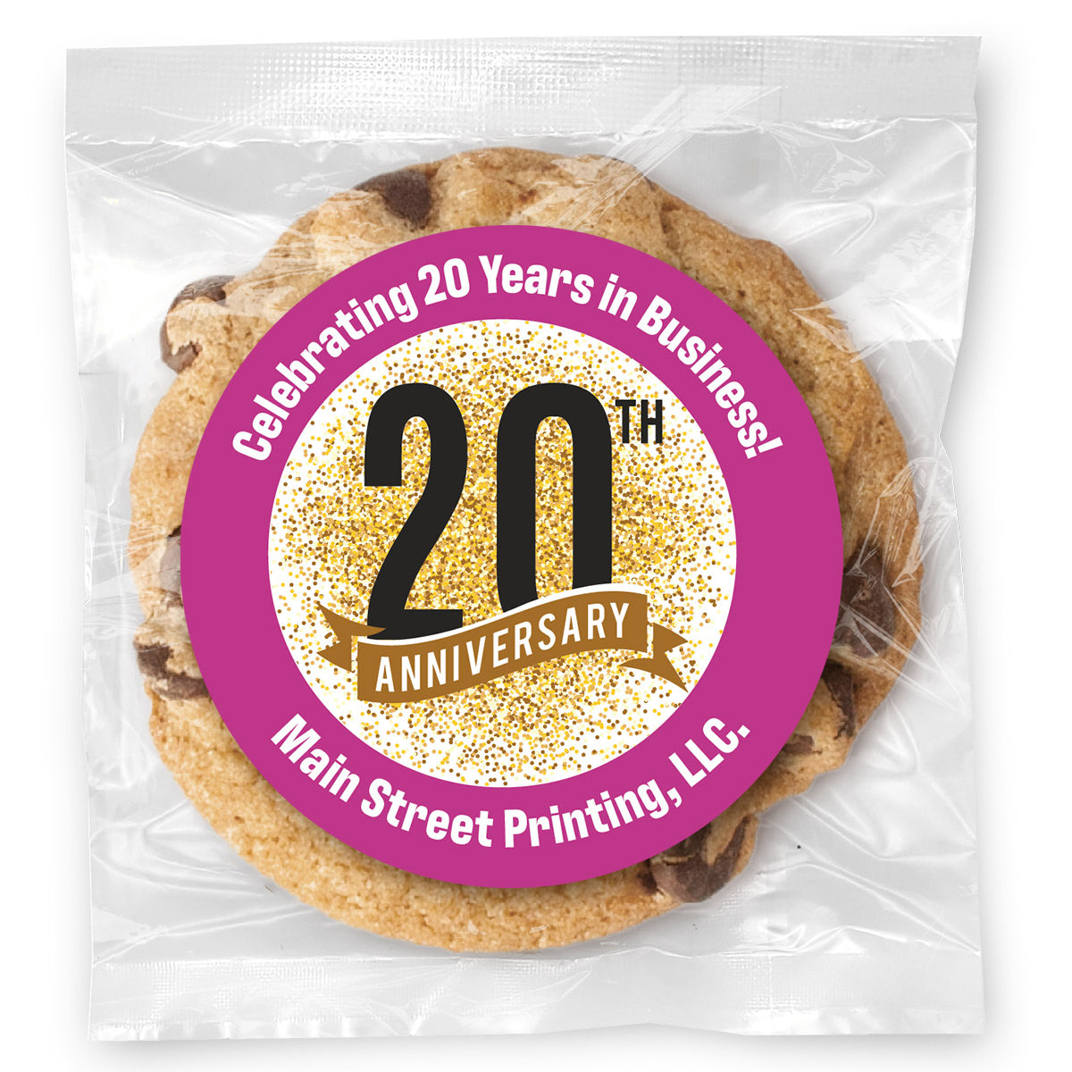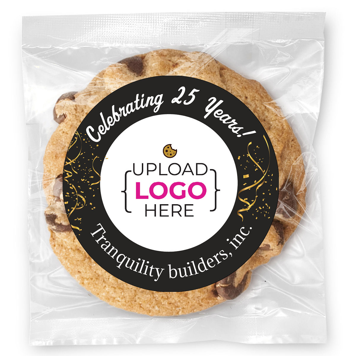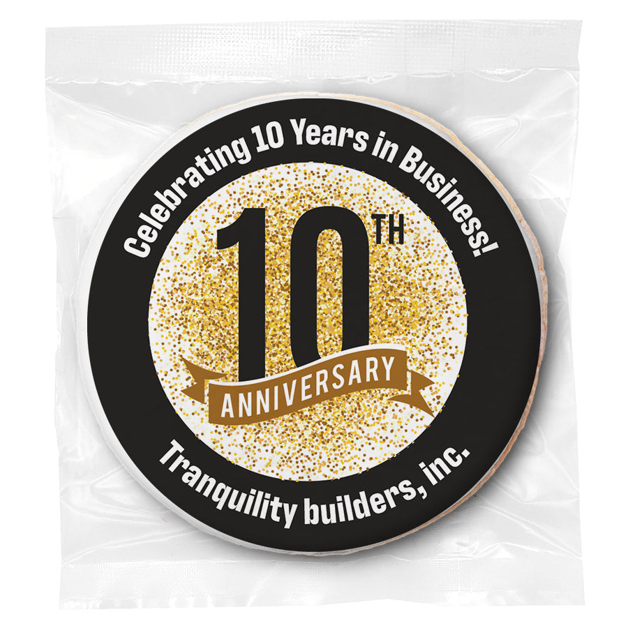- Individually wrapped 3 inch custom-printed sugar cookies.